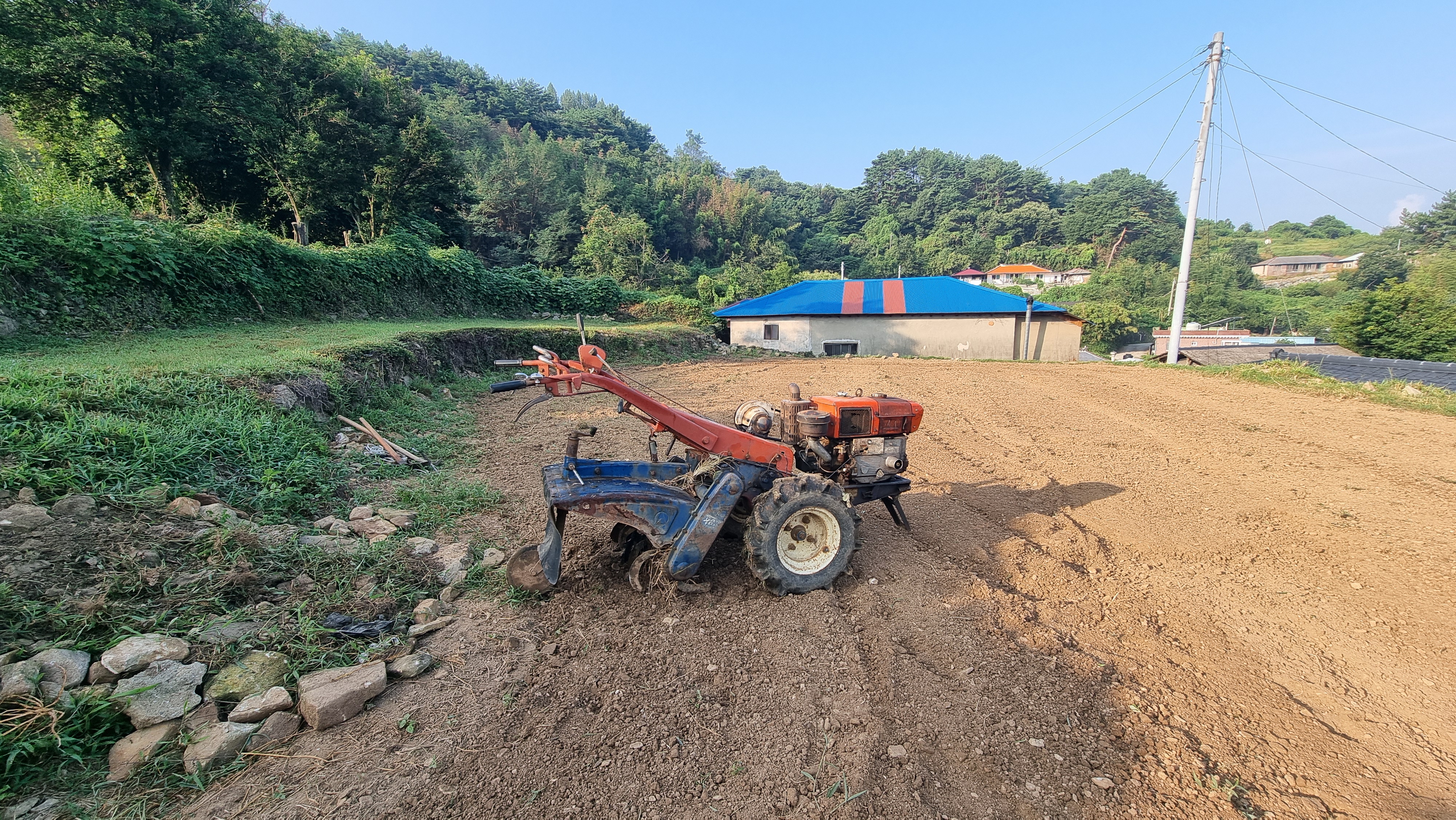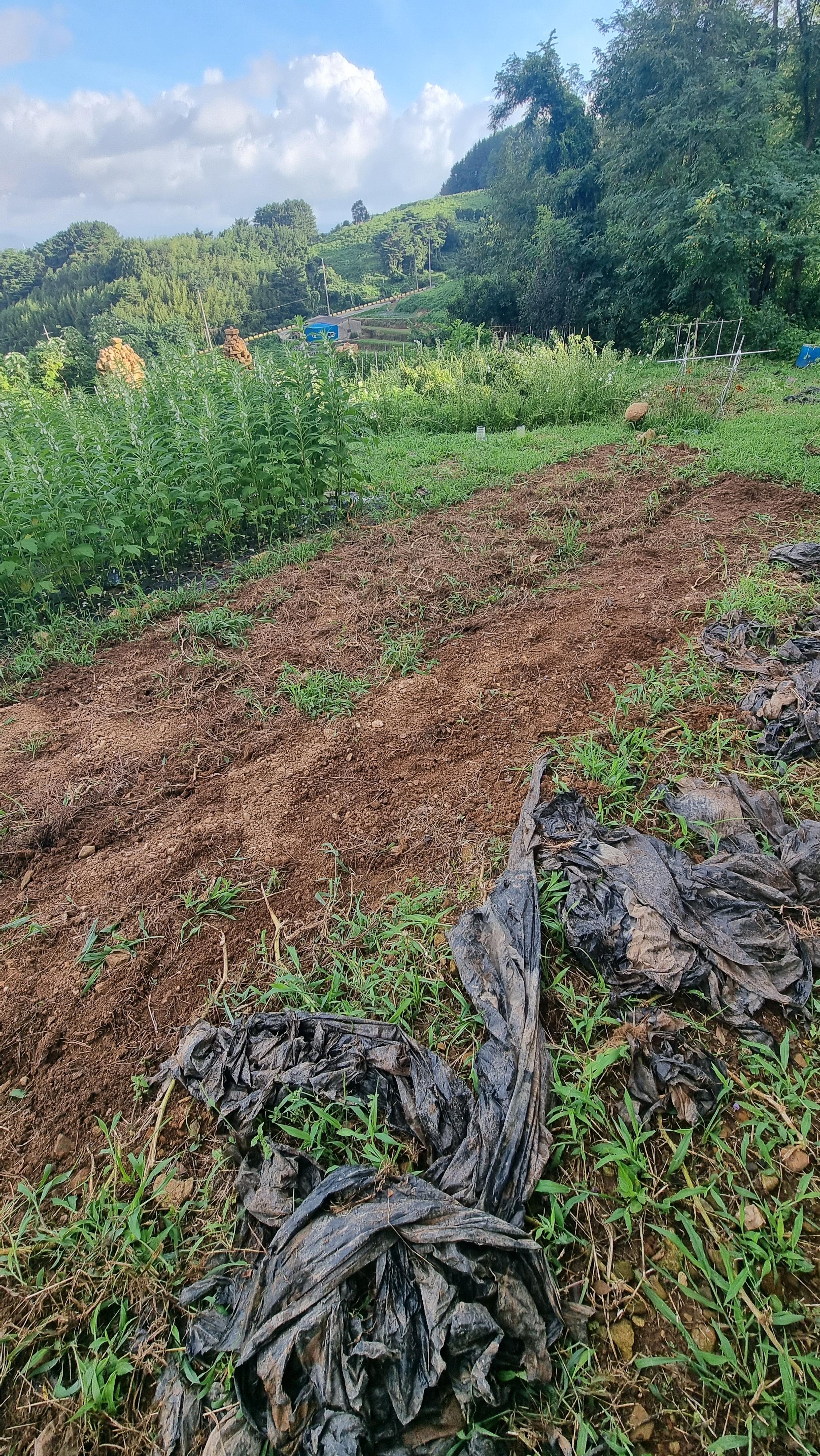 ☎ 24.08.28 - 남해, 수(흐리기도 맑기도) - 고추밭 정리, 고추밭 등 로터리 작업, 걷기 운동, 참깨 고르기 등