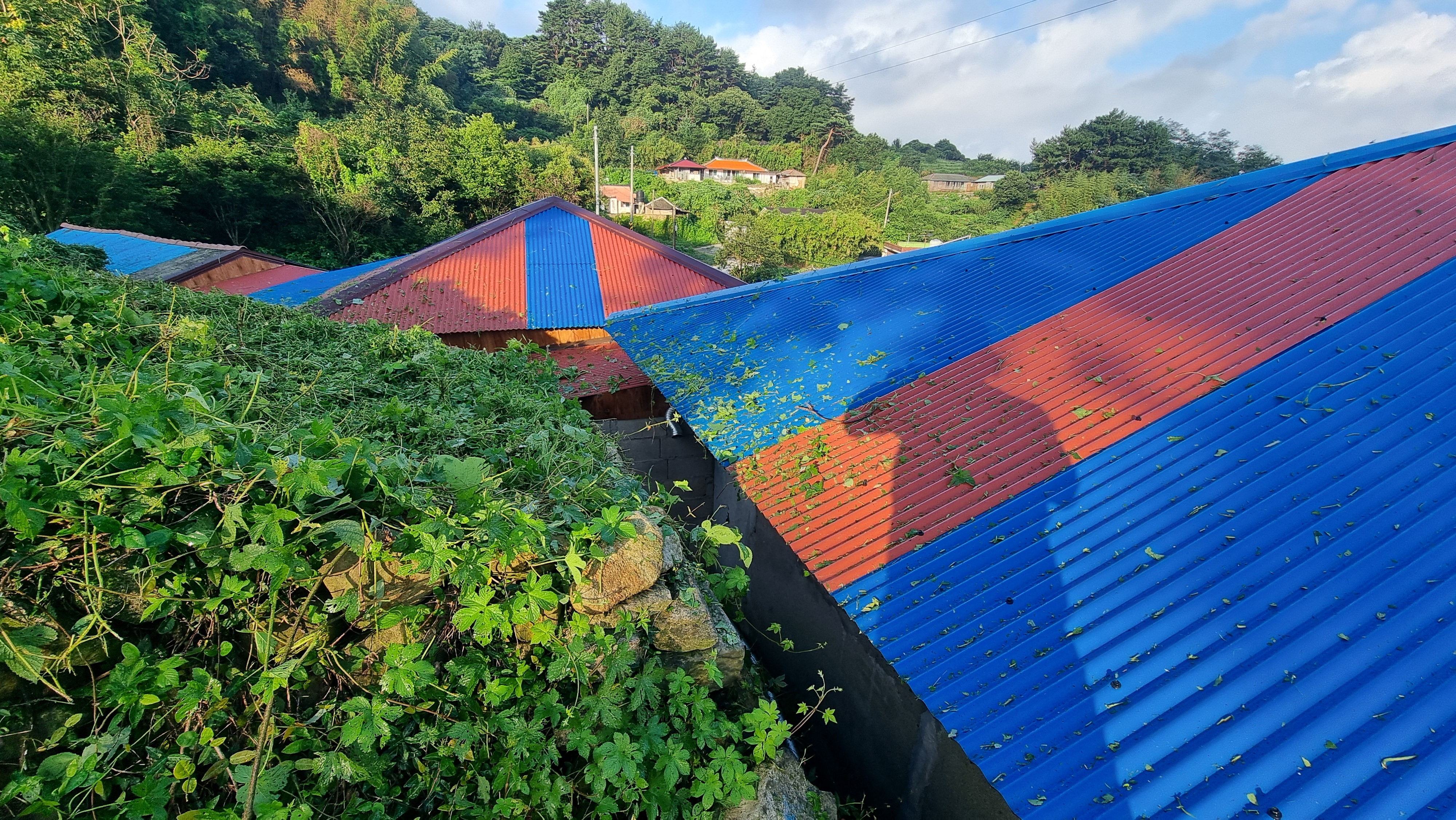 ☎ 24.07.22 - 남해, 월(맑음, 폭염) 마을 공동 예초 작업, 익은 고추 따기, 걷기 운동 등