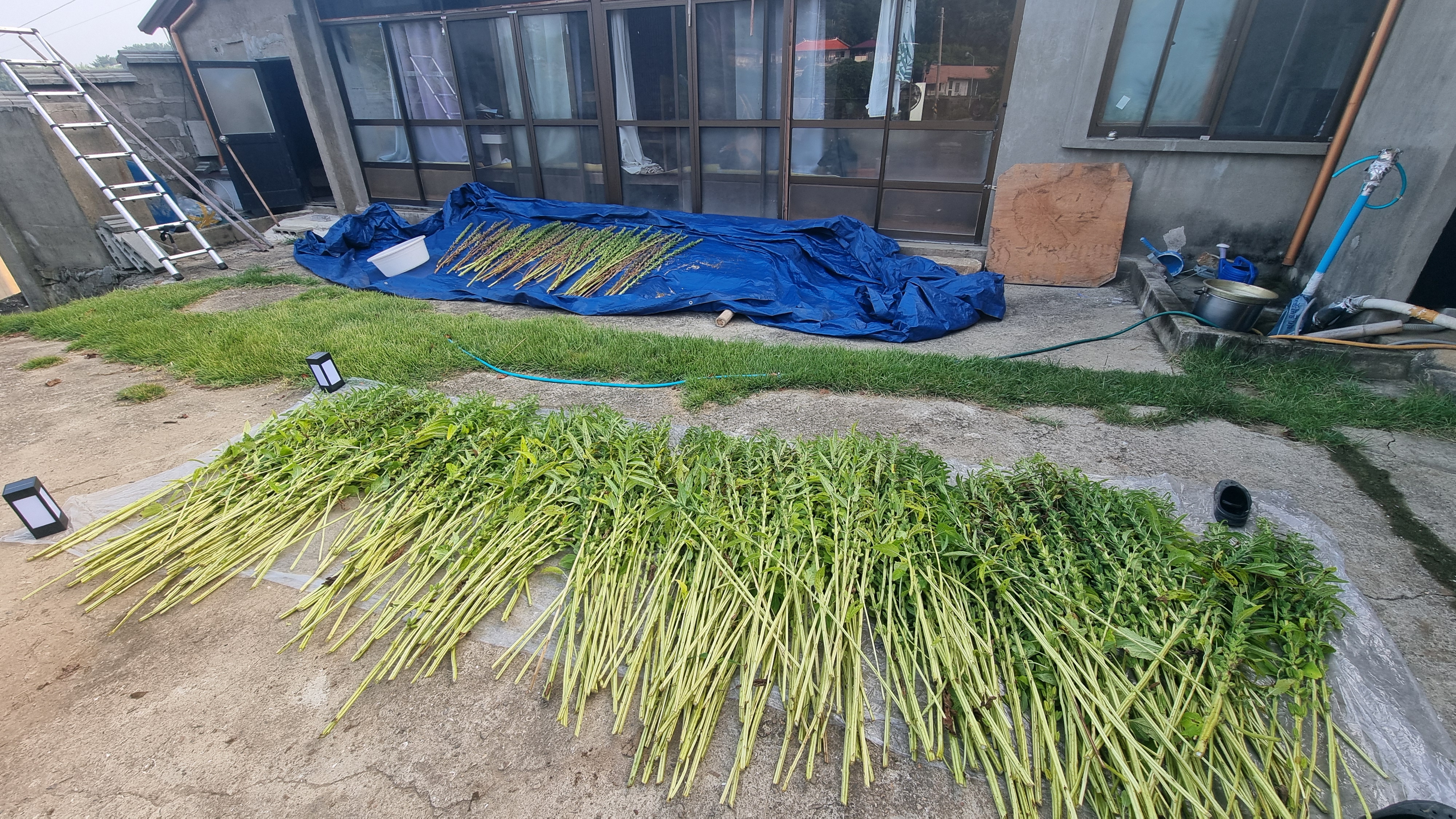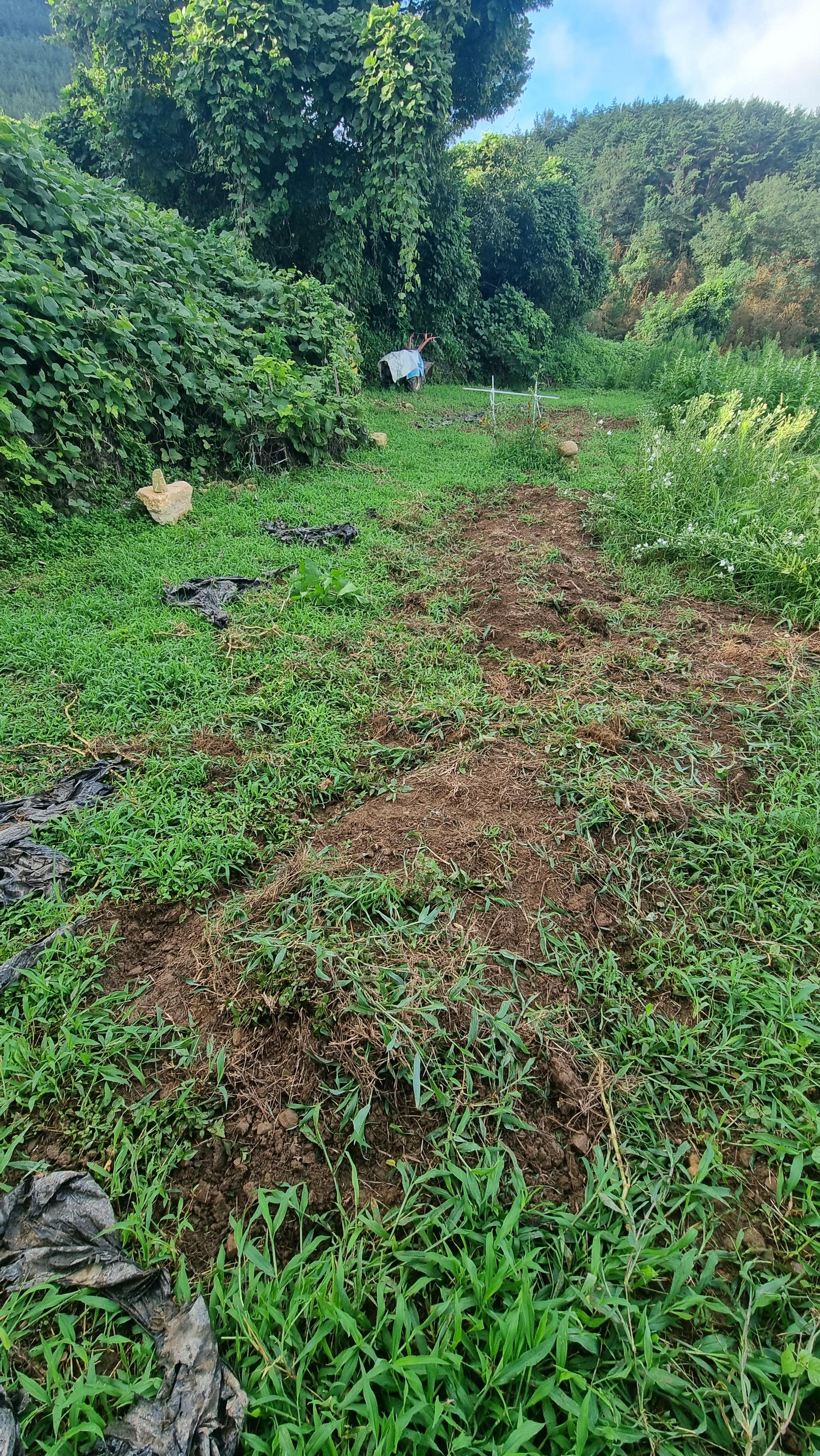 ☎ 24.08.23 - 남해, 금(맑음) - 김장 배추밭 만들기, 창고문 만들기 마무리, 뒷밭 로터리 작업 등