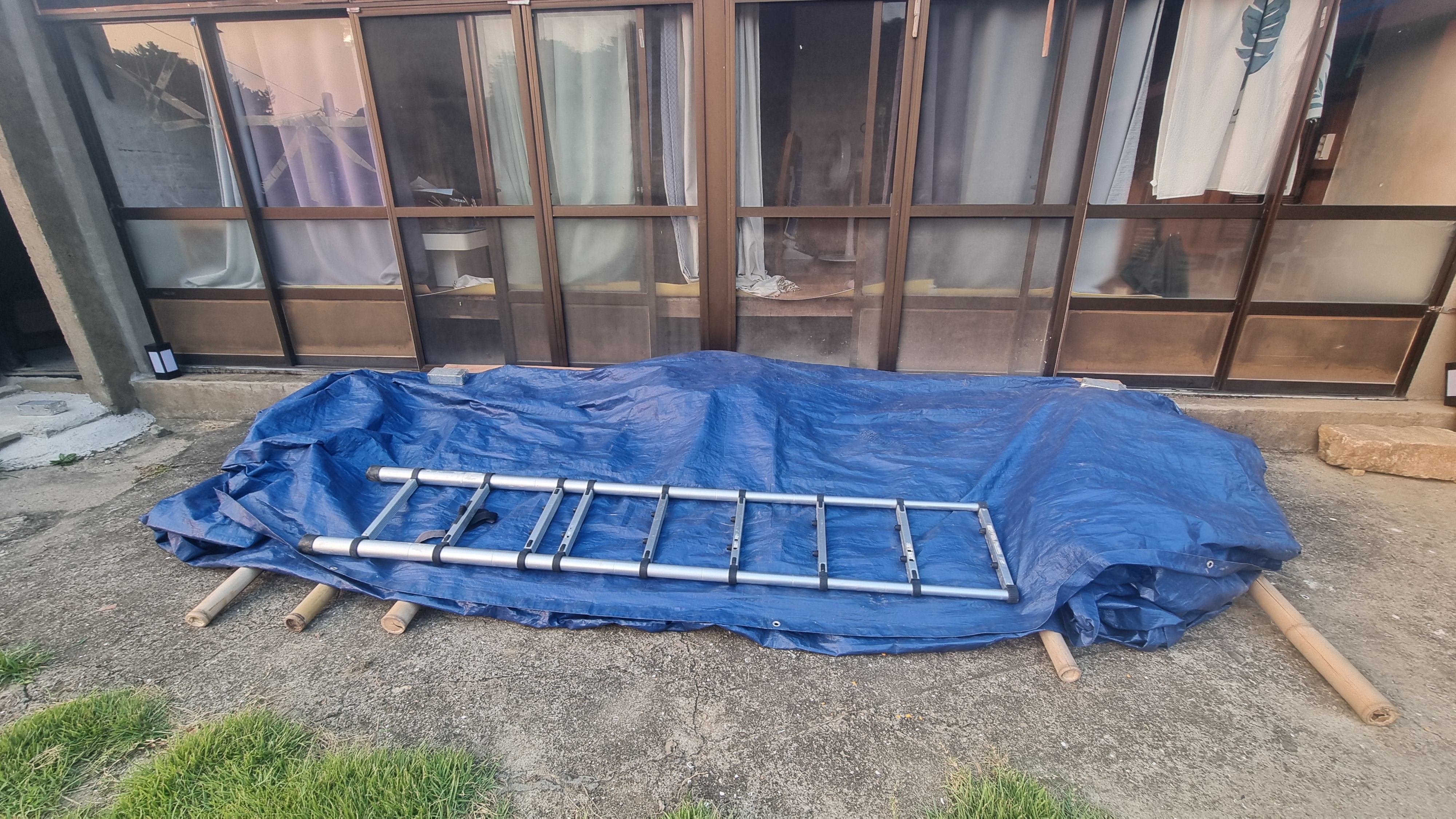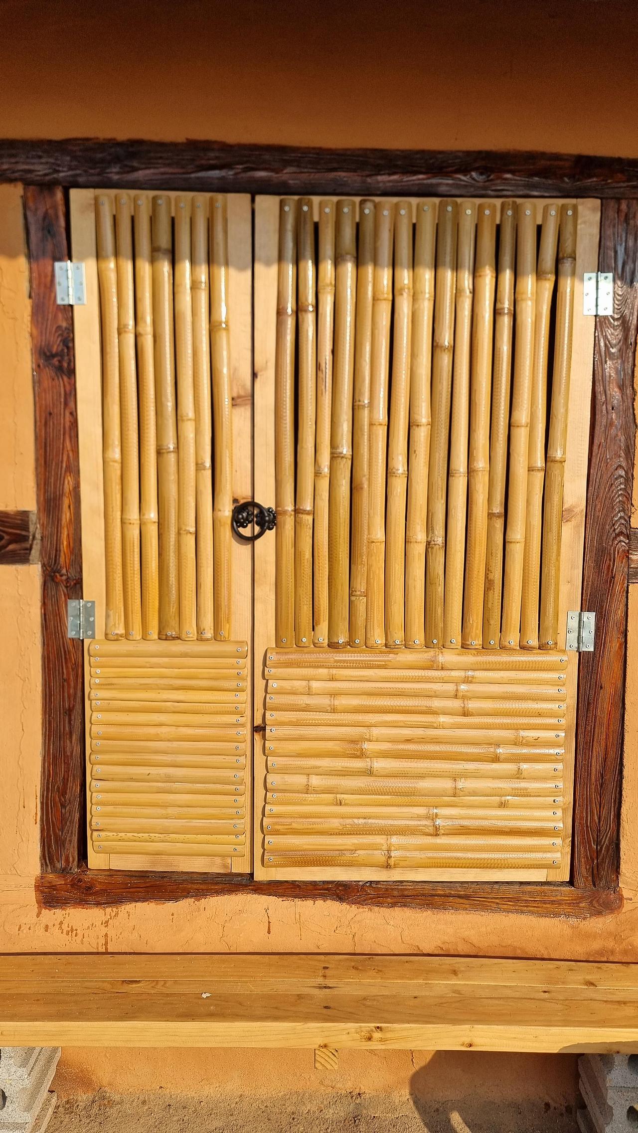 - 점심을 간단히 먹고는 더위를 피해 잠시 낮잠도 잤다. 4시가 조금 넘어 다시 창고 문 만들기 작업을 시작했는데, 대나무를 자르고, 연마하고, 쪼개고....문틀에 붙일 요량이다. 문틀이 굵은 각목이라 무겁기도 하다. 혼자서 이리 젖히고, 저리 굴리고....작은 손이라도 너무나 아쉽다. 어둠이 깔리고서야 일을 마무리했다. 창고 문틀과 문에 장석을 다는 작업까지 끝냈다. 이제는 문틀과 문에 니스 등을 칠하는 것으로 해서 끝낼까 한다. 힘든 작업이었다.