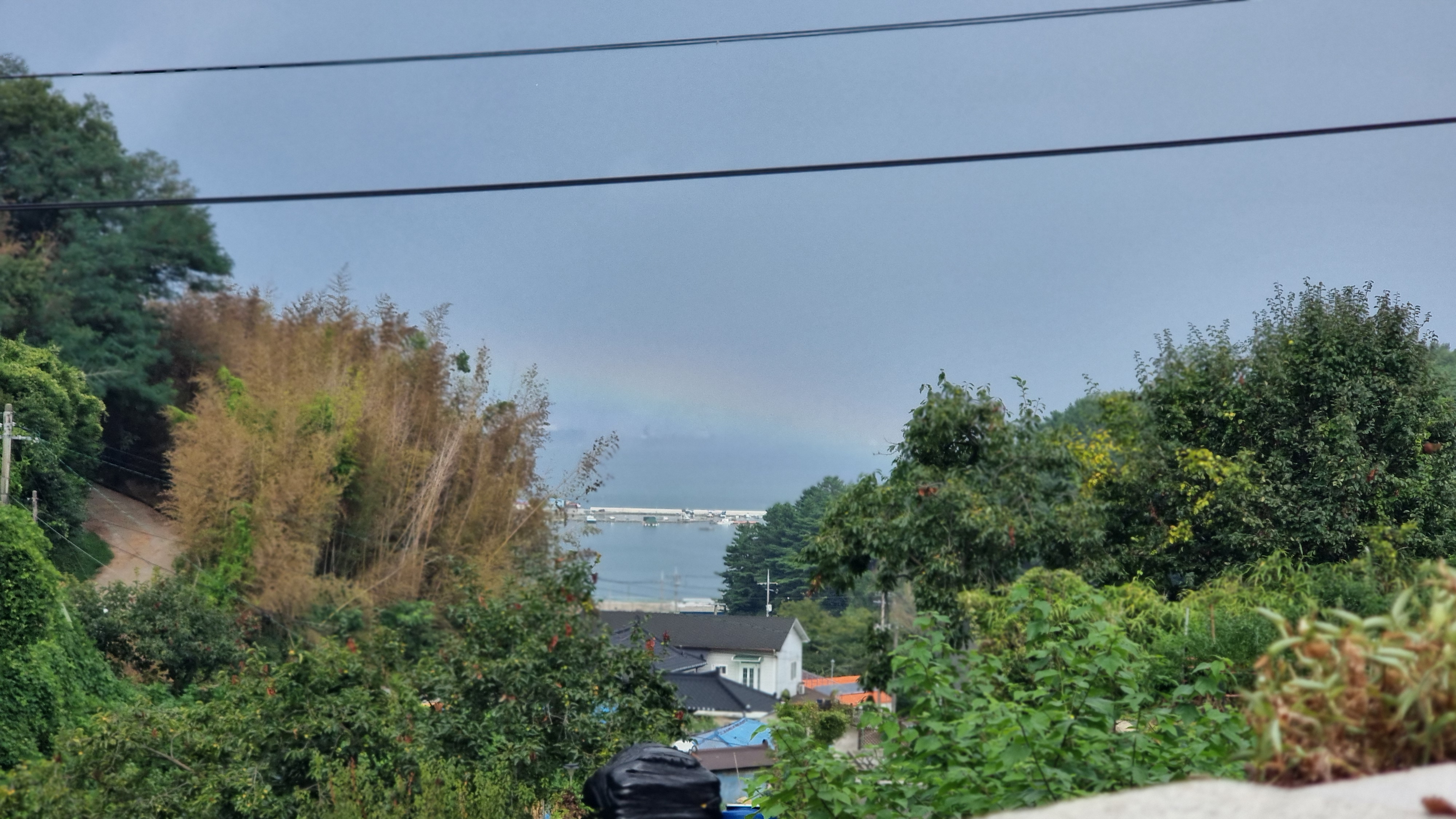 - 작업을 마치고 9시쯤 아침을 먹었다. 잠시 비가 비치는가 하더니 따가운 햇살이 나왔고, 또 조금있으면 비도 아닌 비가 내리기도 했다. 그러다 서쪽 하늘에 무지개도 나왔다. 오랜만에 보는 무지개다. 아침에 잠시, 저녁 늦게도 잠시 걷기 운동을 했다. 가끔 비를 맞기도 했지만 오히려 시원한 느낌이라 더 좋았다. 날씨가 좋았으면 어제 만든 창고문을 마무리 했을텐데
