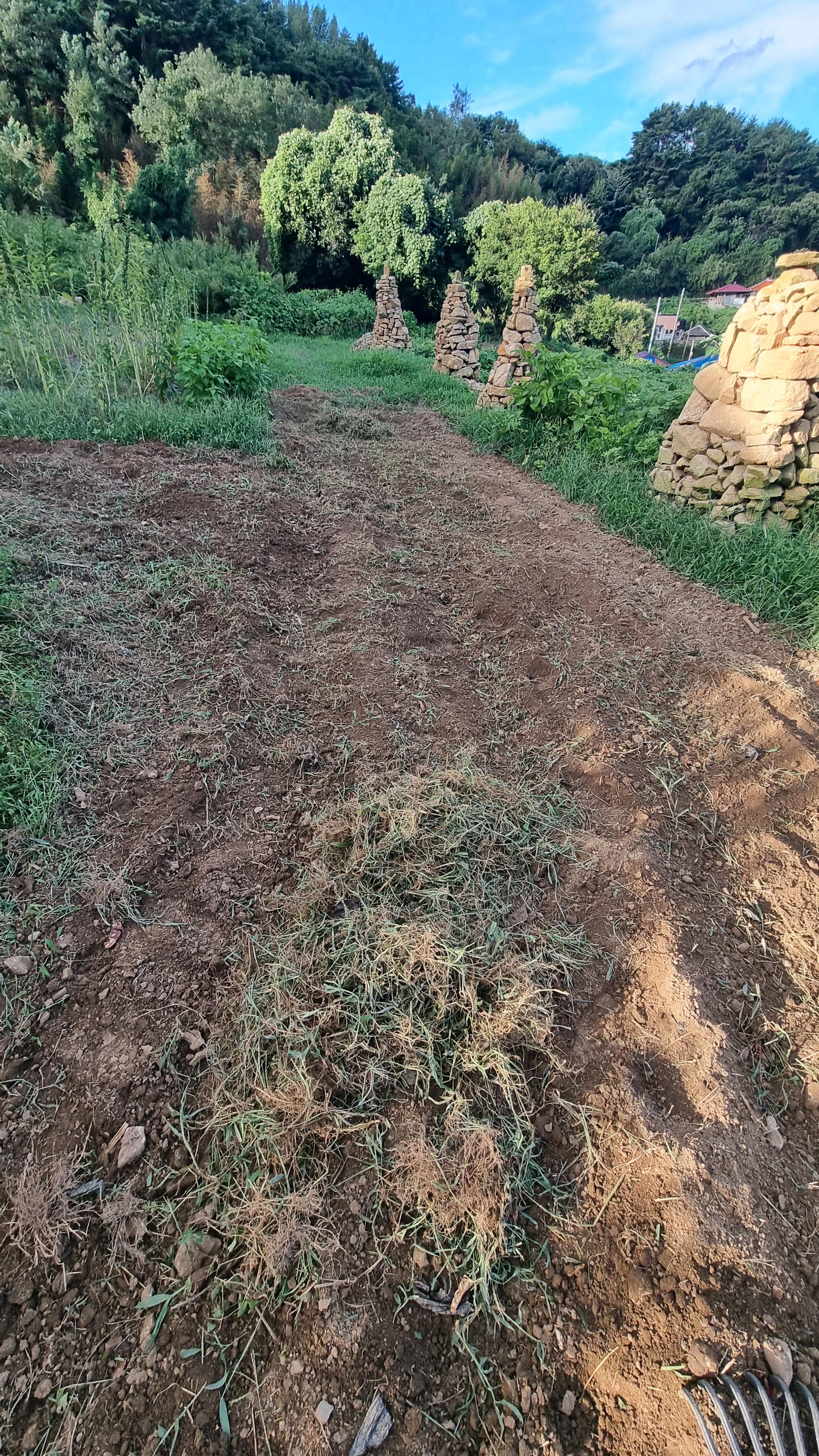 - 낮기온은 별 차이가 없는데 오늘은 조금 흐린 듯해서 그렇게 뜨거운 날은 아니었다. 마찬가지로 아침 저녁으로 바람만 조금 있으면 영낙없는 초가을의 아침과 저녁이다. 새벽 운동 아니 날이 밝은 상태니 아침 운동이라해야 옳을테지. 아침 운동을 조금 했다. 아침을 먹고는 삼발 쇠스랑으로 집 앞 채소밭을 조금 일구었다. 아주 조금 일구었다. 아침 저녁으로 선선할 때 조금씩 일굴 생각인데, 단호박을 심은 곳이다. 아마 이곳에는 다음 달쯤 김장 채소를 심을 곳이다.