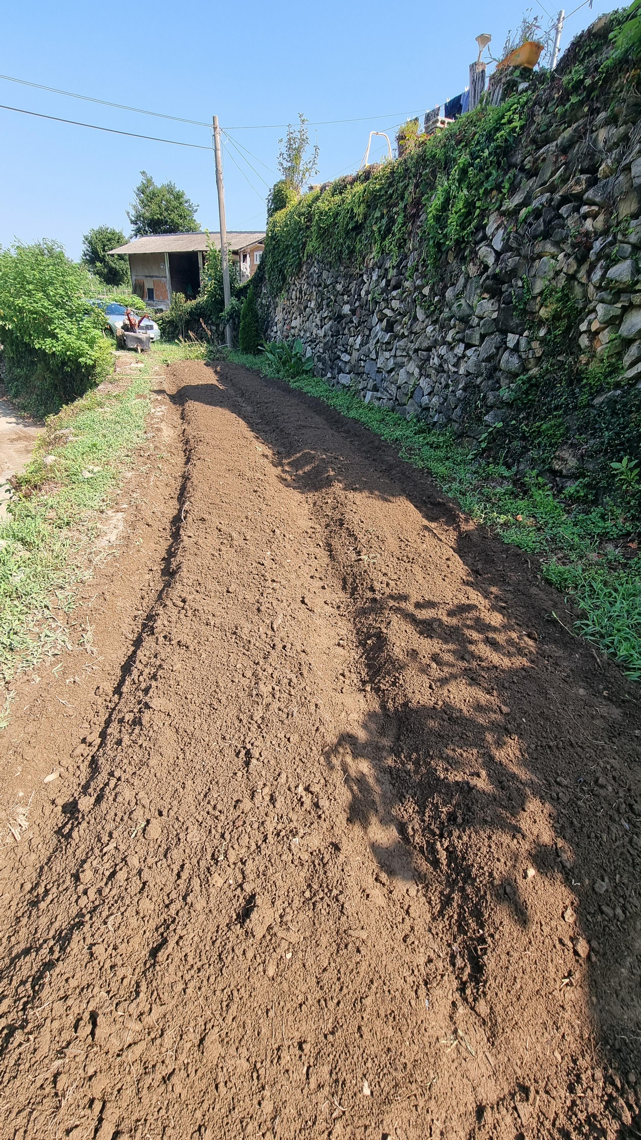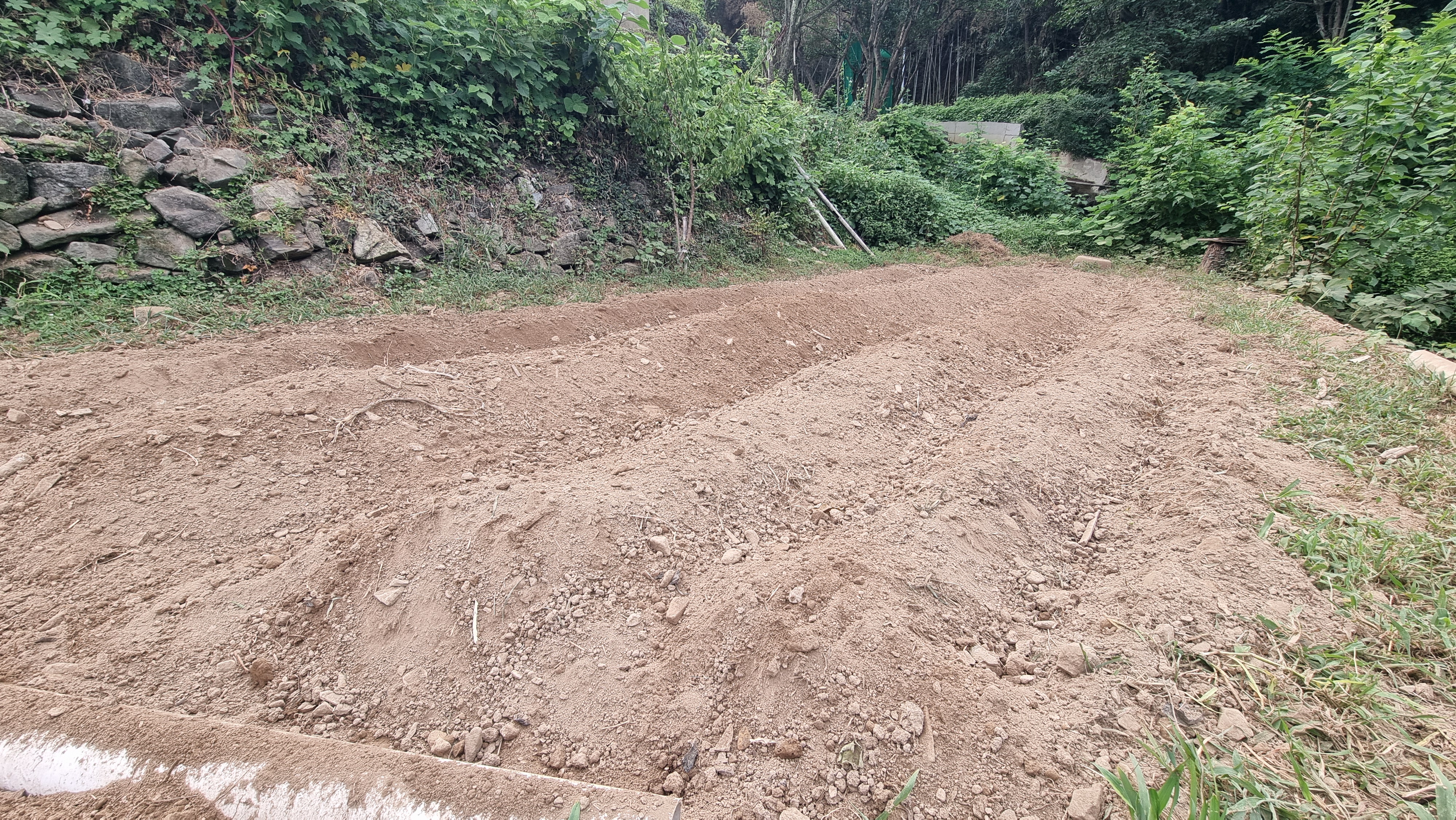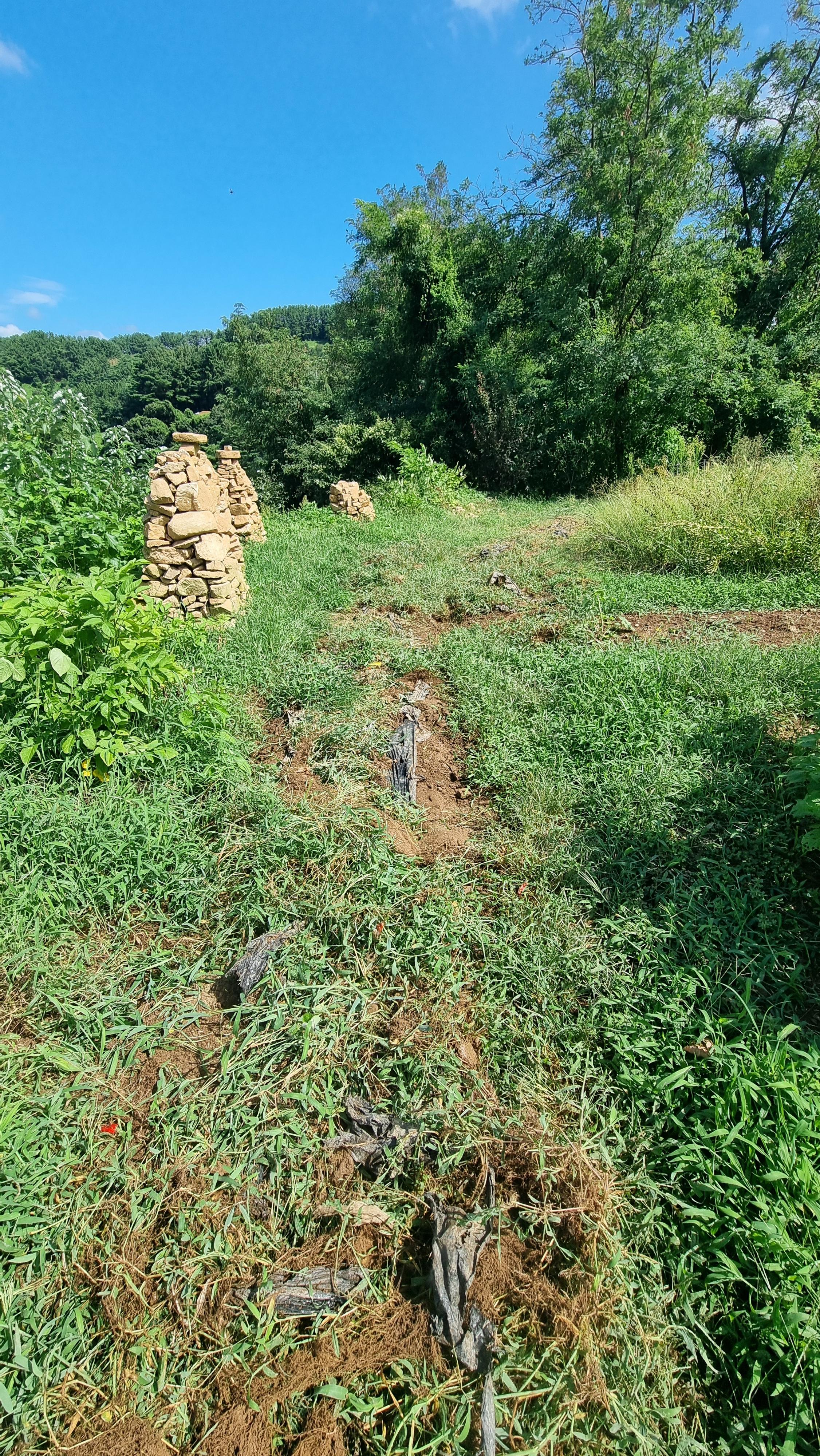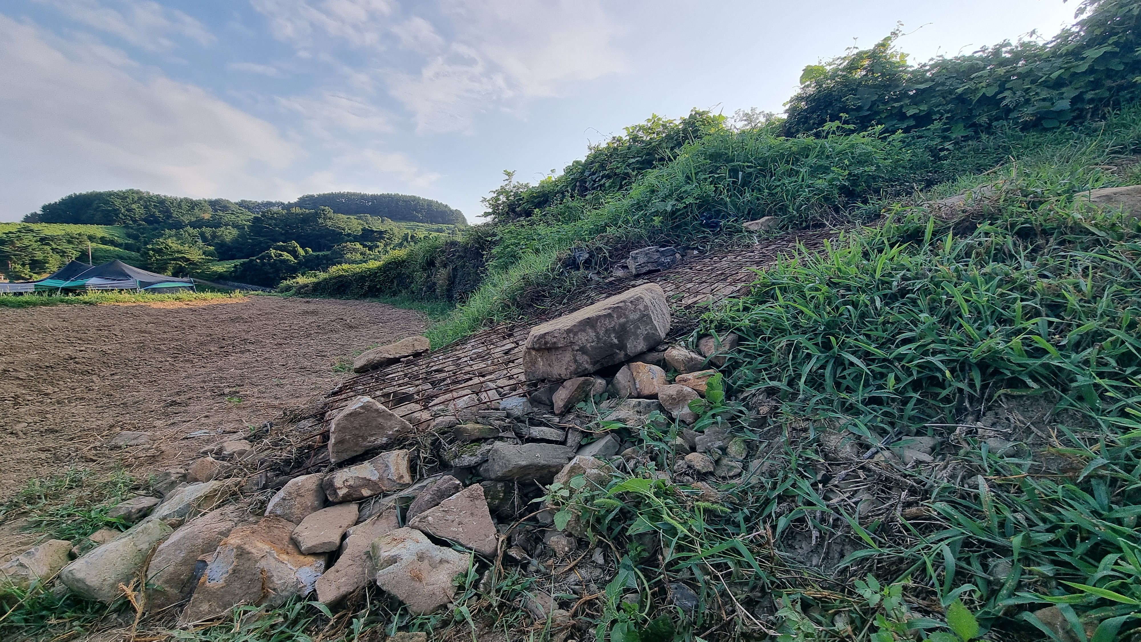 - 조금이라도 시원한 시간에 일을 하려고 나섰다. 경운기가 제대로 이동할 수 있도록 하는 일인데, 오늘도 경사를 조금 완화시키고, 그곳에 철사망을 깔아 시멘트로 길을 만드는 작업이다. 주위에 있는 큰 돌과 잔돌들을 깔고, 철사망을 올리고 다시 잔돌을 채우는 작업을 했다. 오늘도 늦은 아침을 먹었다.