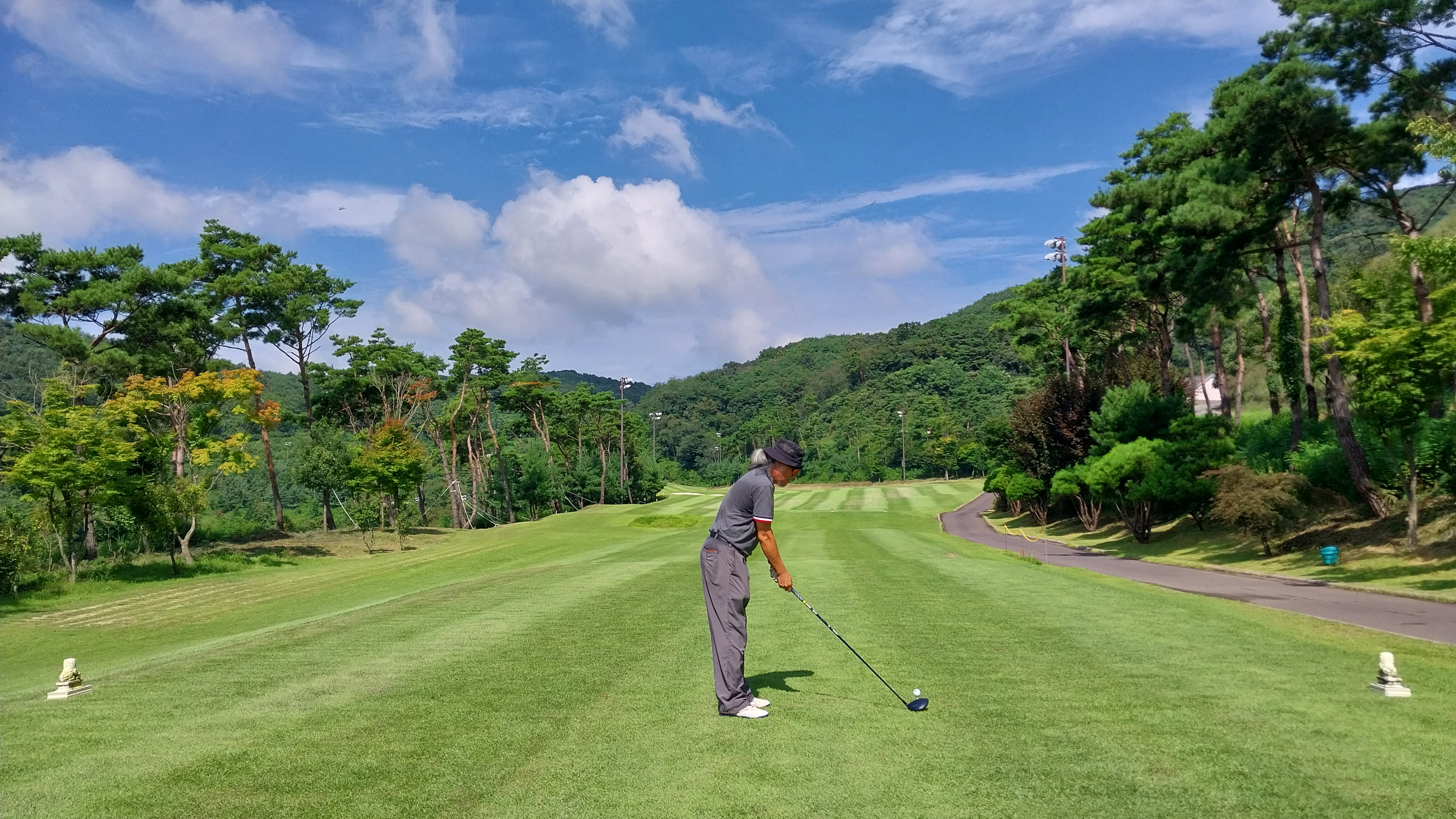 - 새벽 4시에 일어나 나갈 준비를 했다. 알람을 맞춰 놓기는 했지만 혹 하는 마음인지 몇 번 잠을 깬 듯하다. 정확히 4시 반에 집에서 출발했다. 네비게이션에 목적지 도착 시간이 6시 5분 전후다. 시간은 충분하기 때문에 아주 천천히 운전을 했다. 고속도로에서도 100km/h을 넘지 않은 듯하다. 6시 10분쯤 도착했더니 동반자 명단에 벌써 한 명이 기록되어 있었다. 얼마만에 라운딩인가! 3년은 훨씬 넘은 듯하다. 예전에도 그랬듯이 즐기려고 하는 운동이니 성적에 별 관심을 두지 않는다.