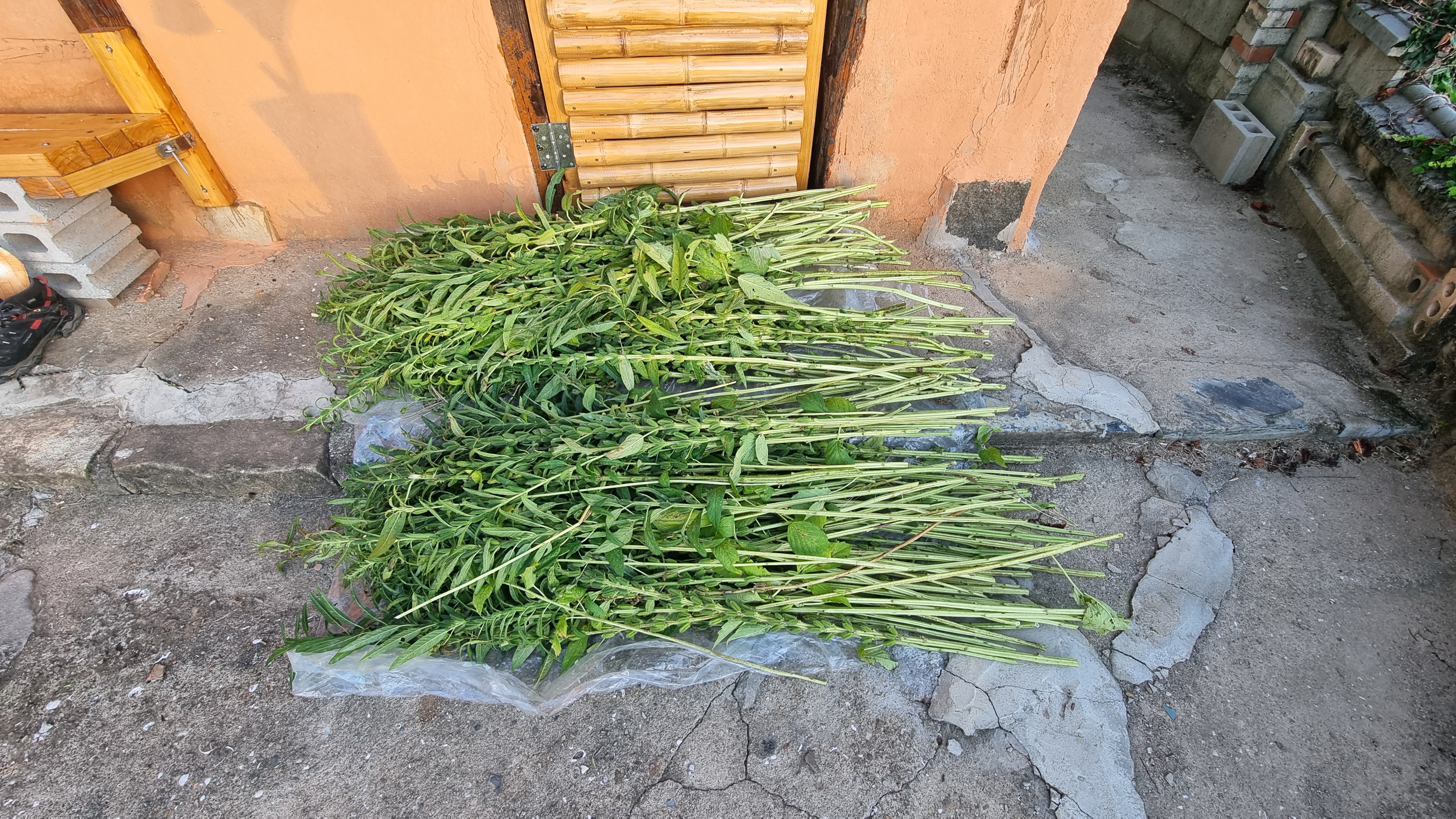 ☎ 24.08.26 - 남해, 월(맑음) - 참깨 잎 따기 및 말리기, 걷기 운동 등