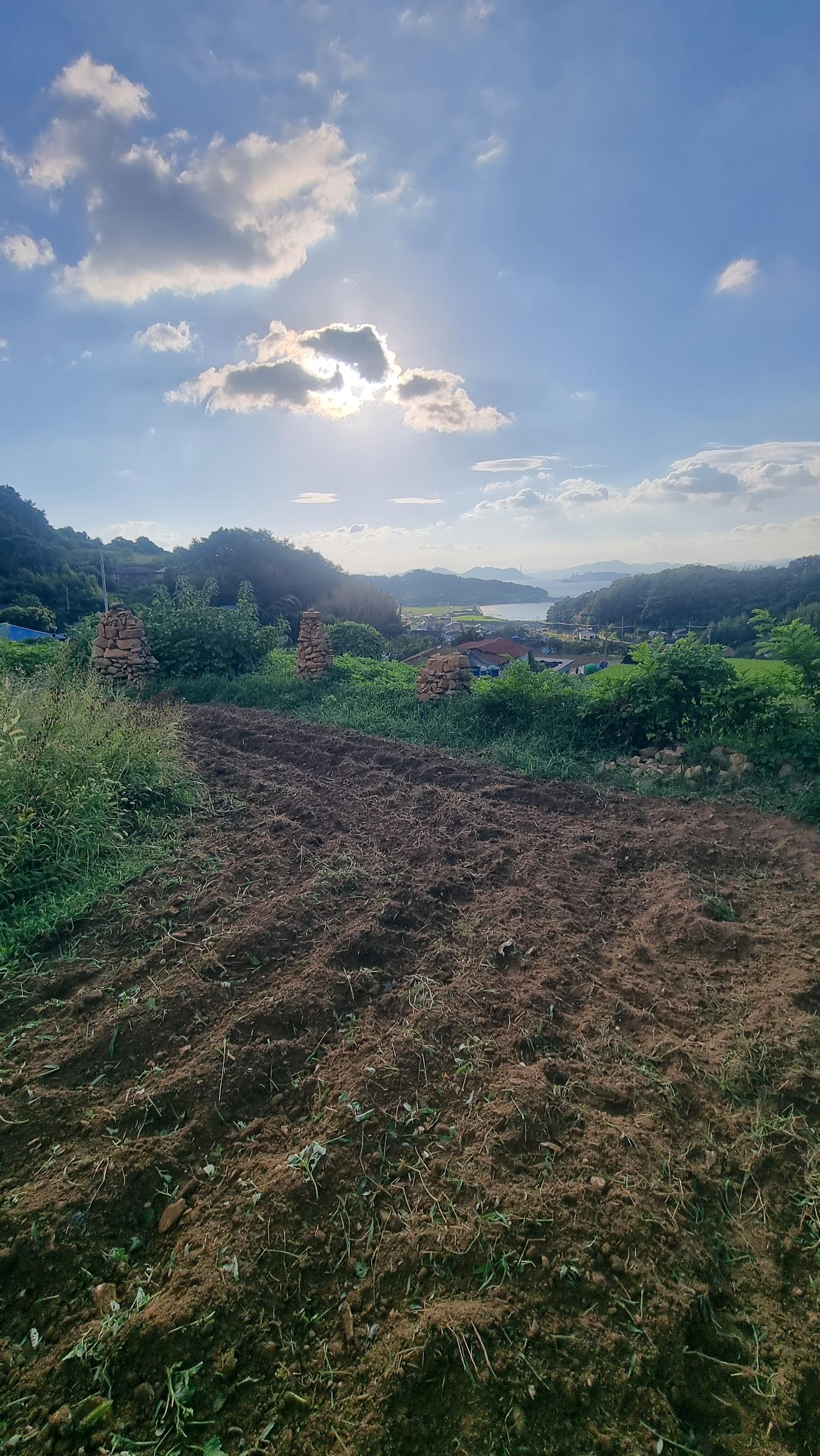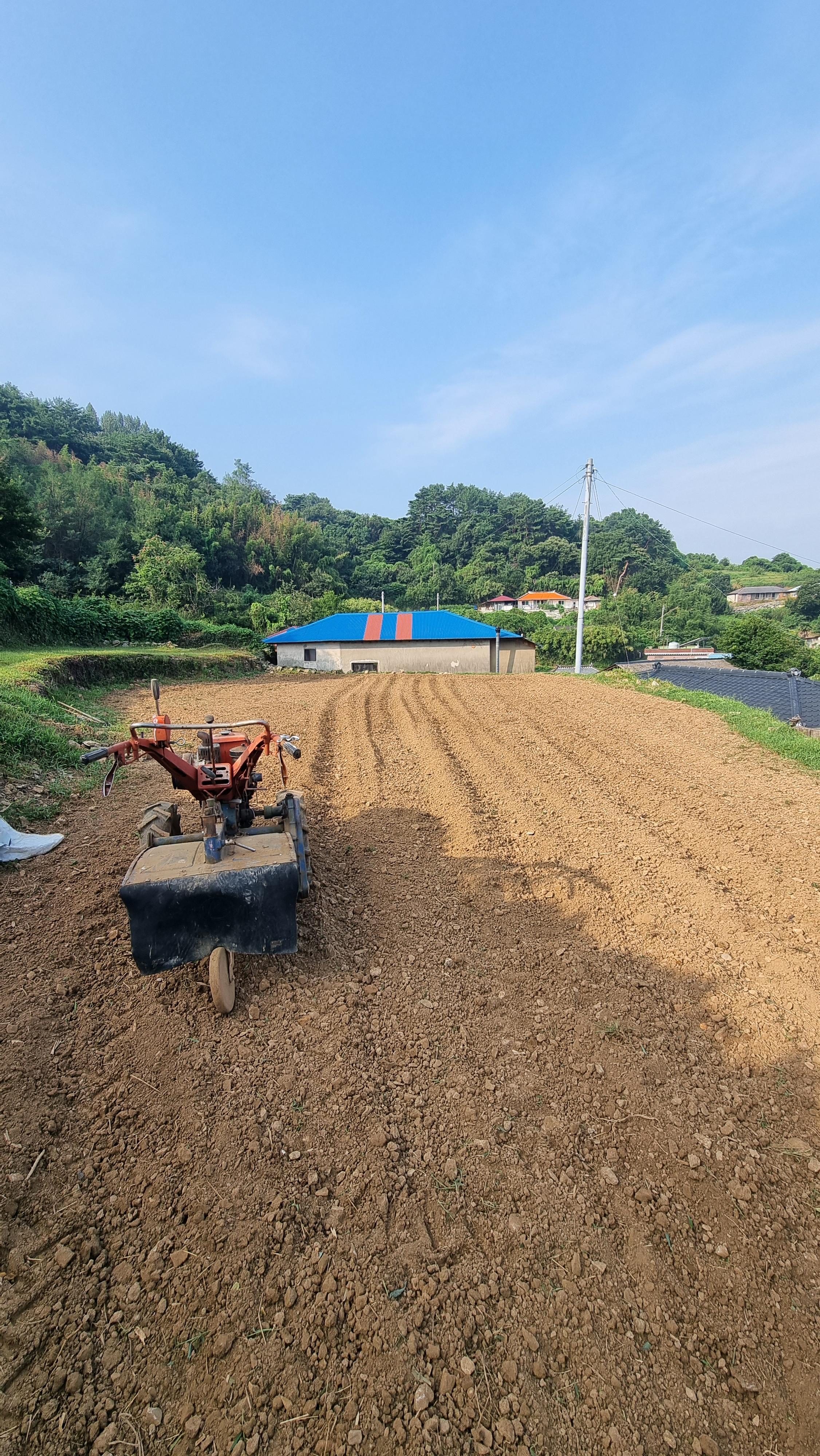 - 요즘은 아침 체조도 거른 채 일부터 시작한다. 일어나서 밖으로 나가면 맨 먼저 대문을 열고, 밤새 덮어 놓았던 참깨 천막을 펼쳐 훈기가 나가도록 하고, 고추와 고른 참깨를 널어 놓고.....쇠스랑을 들고 밭으로 갔다. 어제 정리한 참깨밭에서 비닐들을 걷어 내고는 경운기로 로터리 작업을 했다. 작업을 하면서 나오는 큼지막한 돌과 비닐 잔해들을 수시로 제거해야했다. 이곳에는 곧 마늘이나, 양파를 심을 예정이다.