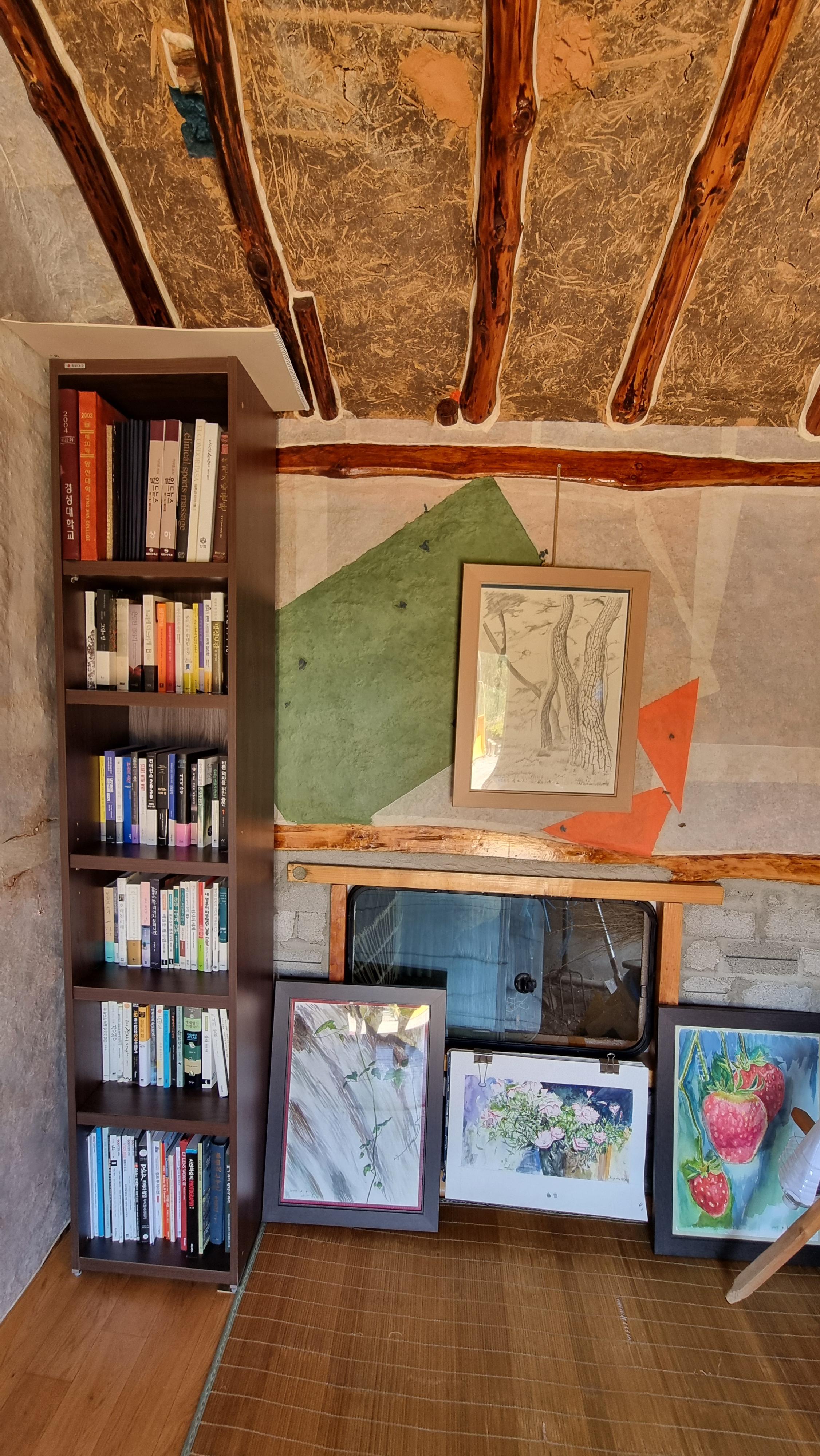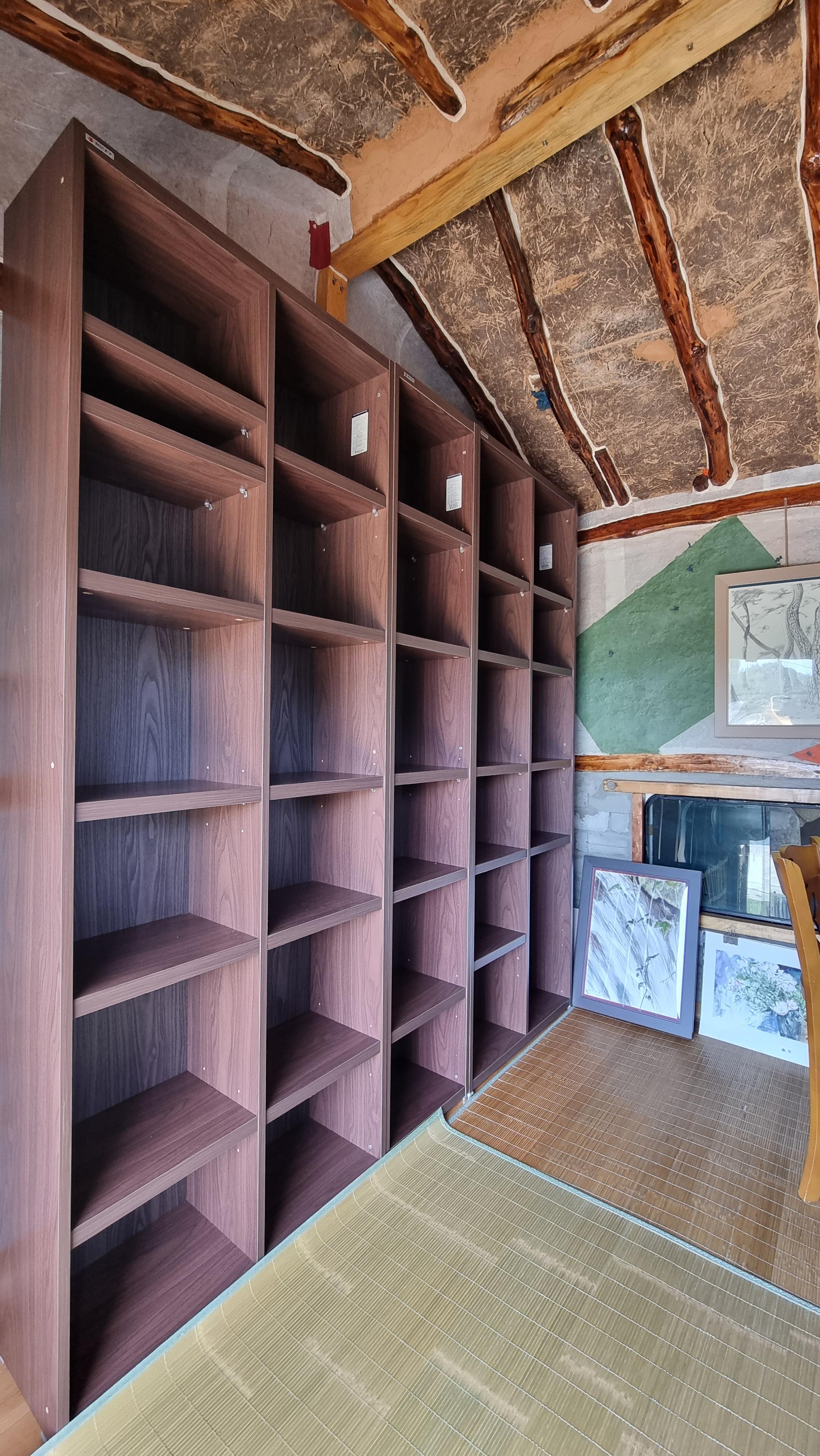 - 짝지를 보내고 와서는 얼마전에 집에서 가져온 책장을 재배치 했다. 애초에는 본채 안방에 넣으려고 했었는데, 천장의 높이가 맞지 않아서, 아랫채 다실에 놓았는데, 그 책장으로 인해 그나마 작은 방이 더 좁게 느껴져 다시 재배치를 한 것이다. 그래서 안방에는 책장을 세우지 않고 눕혀 놓았다. 그랬더니 폭이 조금의 여우도 없는 꽉 찬 십문 칠이다. 한 칸은 아랫채 다실에 그대로 두었다. 그곳에도 취미 관련 책들이나 재로나 도구, 용기 등을 넣는 용도다. 이것을 옮기는데 씨름을 했었다. 다 옮겨 놓고 책장 위에 또 하나를 올리는 것을 혼자서는 도저히 할 수가 없어 이웃집 사장님을 잠시 불렀다. 채 1분도 걸리지 않은 일이다. 그런 손이 필요 했었다.