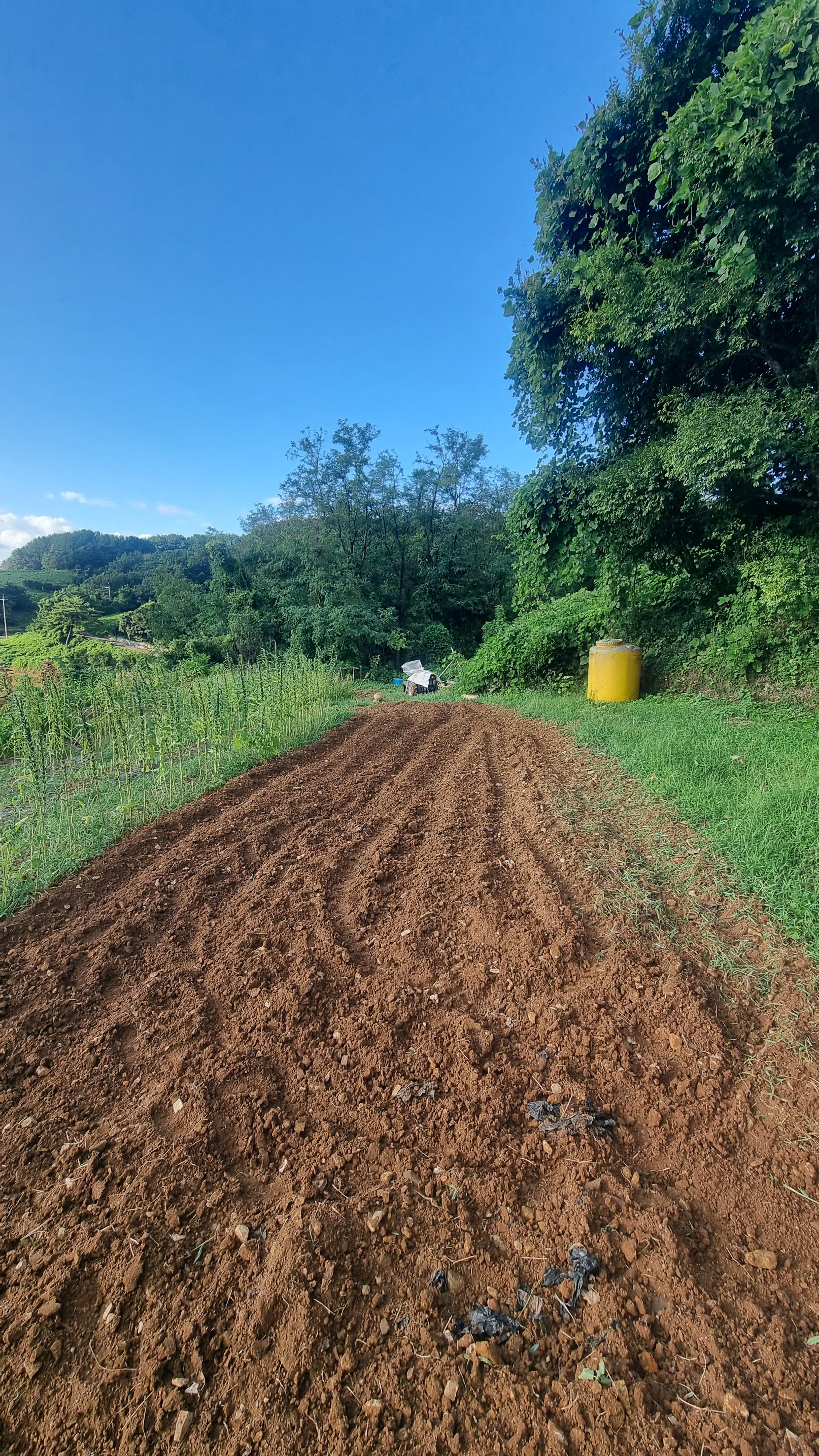- 새벽에 비가 많이 내렸다. 아마도 게릴라성 폭우가 내렸다. 그러다가 아침에는 그치고 폭염이 이어졌다. 아침을 먹기 전에 엊그제 부산에서 왔다갔다 하시면서 농사를 지으시는 이웃 집에서 그동안 관리하시던 우리 밭을 완전히 넘겨 주셨다. 난 아직 준비를 하지 않은 상태지만, 돌려주시니 이제부터 내가 관리를 해야 할 듯하다. 지목은 '대지'이나 현재 '전'으로 이용하고 있는데, 평수가 180평이 넘는다. 내가 관리해야 할 밭이 180평 정도가 단번에 늘어 난 셈이다. 물론 당장 전체 면적을 다 이용할 생각은 하지 않는다, 그 중에서 적당한 면적을 사용할 예정이다.