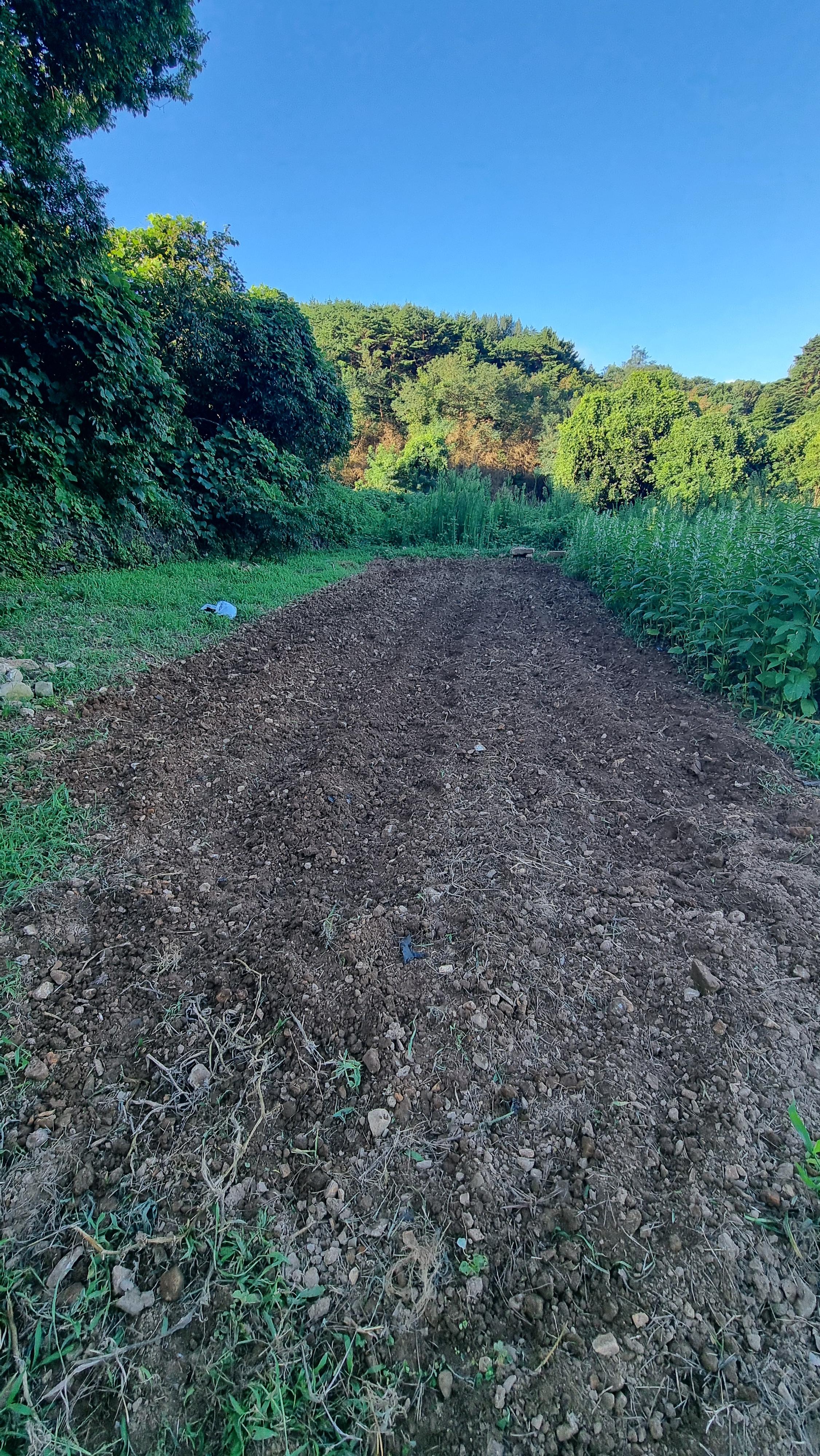 - 어둠이 채 가시기 전에 잠시 운동을 하고는 밭에 갖다 놓았던 퇴비와 토양 살충제를 뿌린 후, 경운기를 작동시켰다. 퇴비와 살충제를 뿌린 이곳에 김장 무우를 심기 위한 작업을 했는데, 무우는 다음 주 정도나 말쯤 심을 예정이다. 많이 심을 생각은 없다. 그래도 오늘 만들어 놓은 곳에 널찍널찍하게 적당히 심는다 하더라도 50포기 이상은 심어질 듯하다.