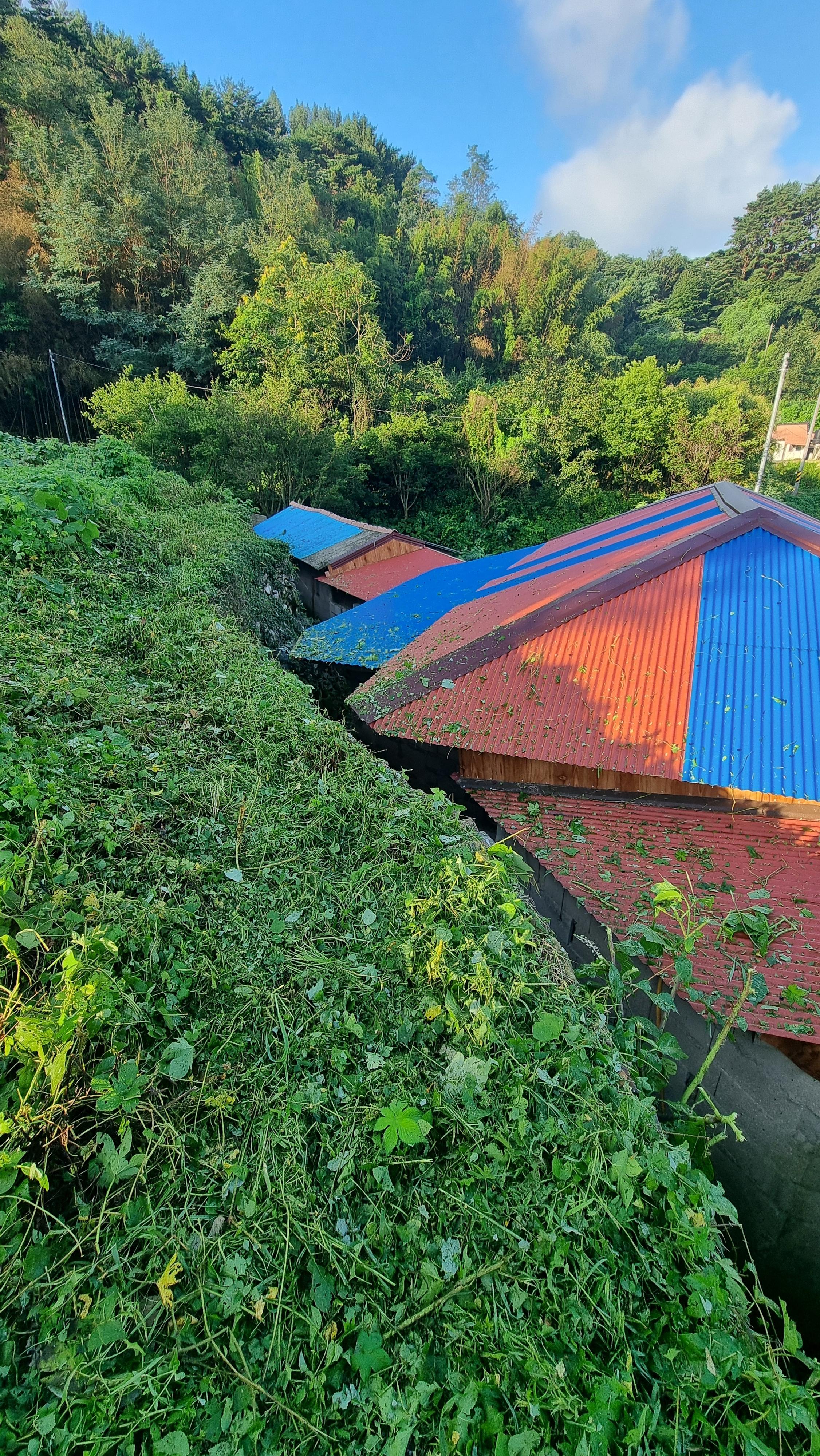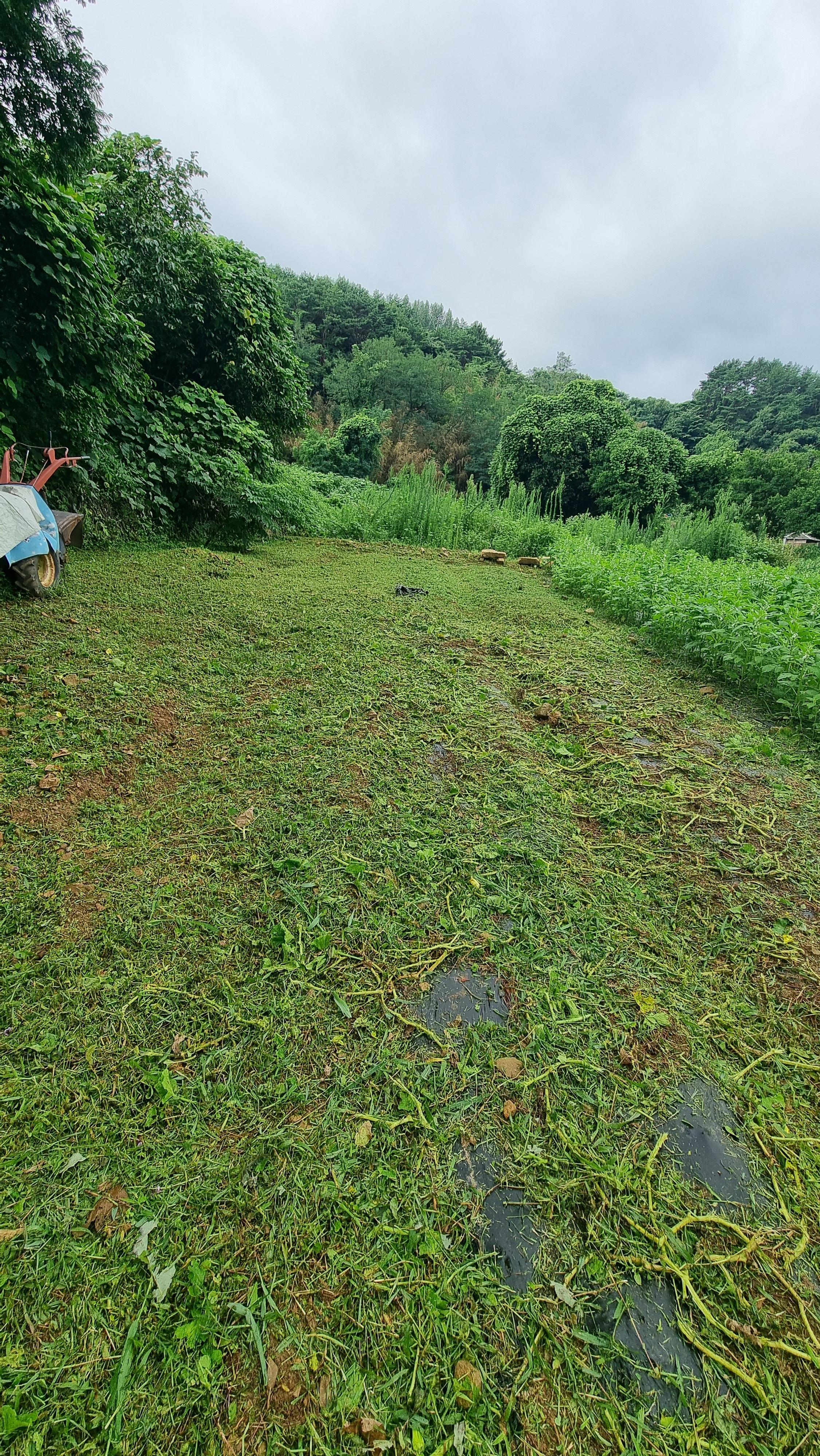 ☎ 24.07.24 - 남해, 수(맑다가 비도) - 집 뒤의 밭 예초 작업, 걷기 운동 등