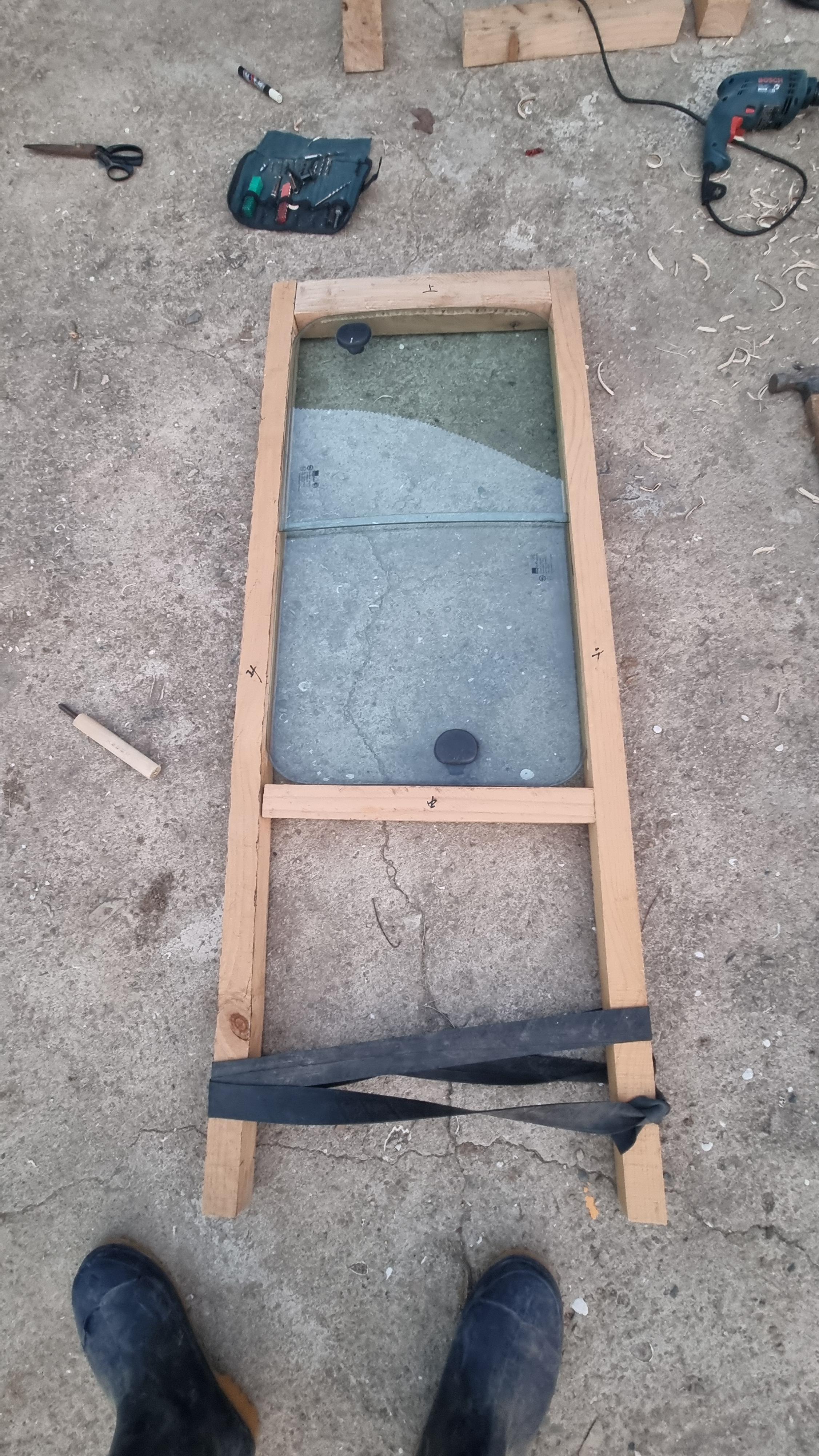 - 얼마 전에 그 문에 사용할 자동차 유리문과 각목으로 문 만드는 데 필요한 대략의 형태는 제작해 놓았다. 오늘은 문틀을 연마하고, 차 유리를 고정하는 작업을 좀 했다. 내일 정도면 대충의 문 형태는 만들어질 수 있을 거다. 그기에 대나무를 쪼개어 문을 완성하고, 연마 및 니스 등을 칠하여 마무리 할 생각이다. 다 만들어 놓으면 또 하나의 작품 아닌 작품이 될 듯하다.
