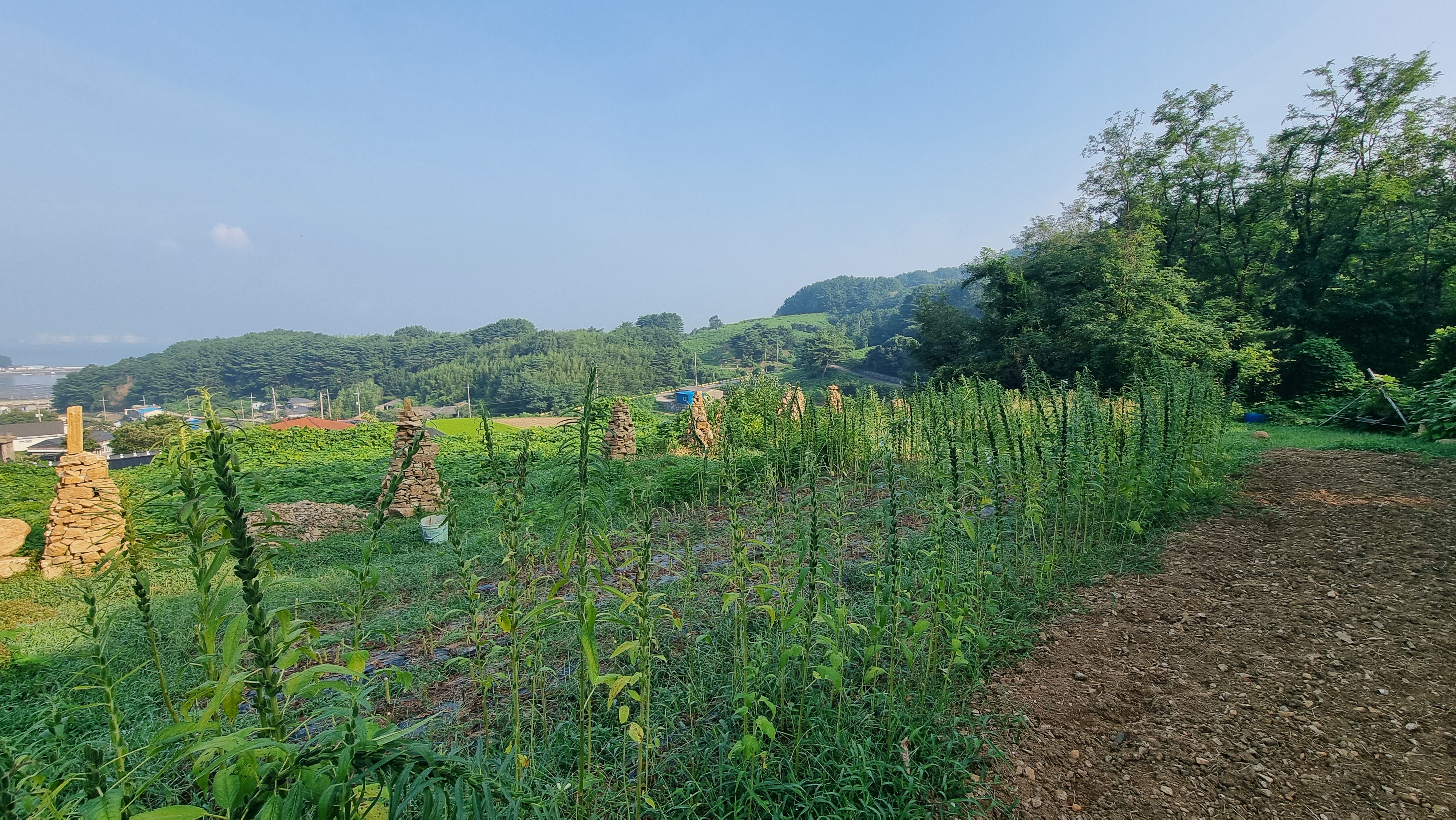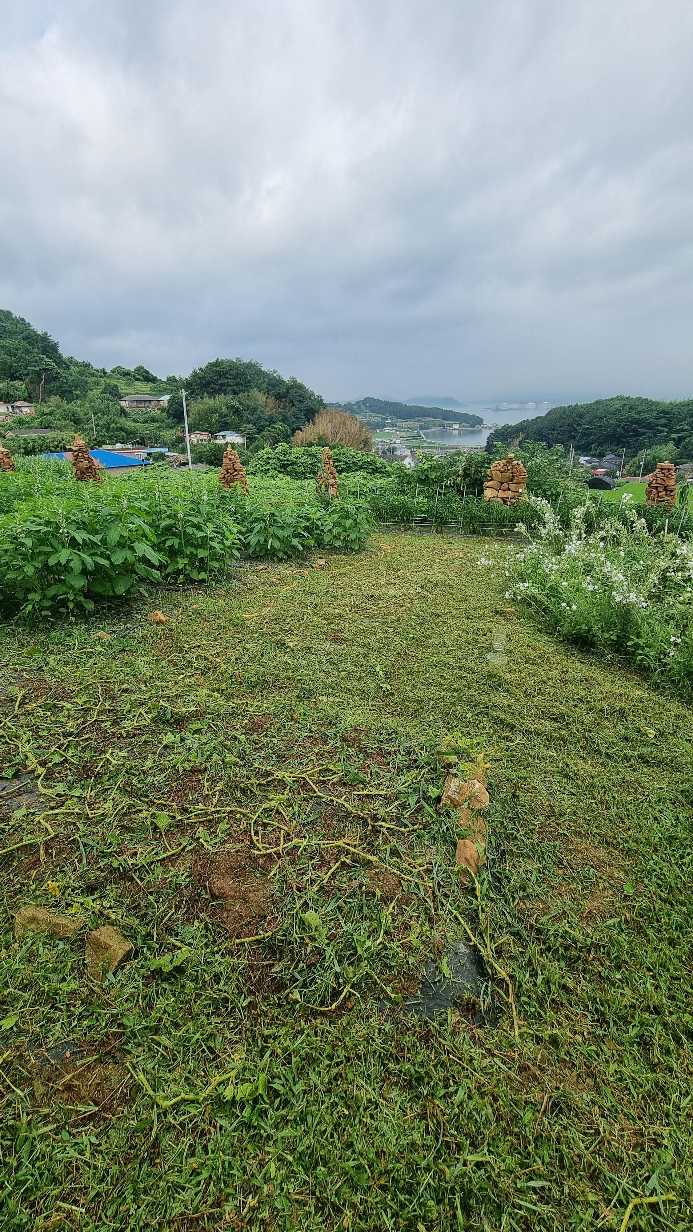 ☎ 24.07.09 - 남해, 화(흐림) - 채소밭 일구기, 걷기 운동, 예초 작업 등.