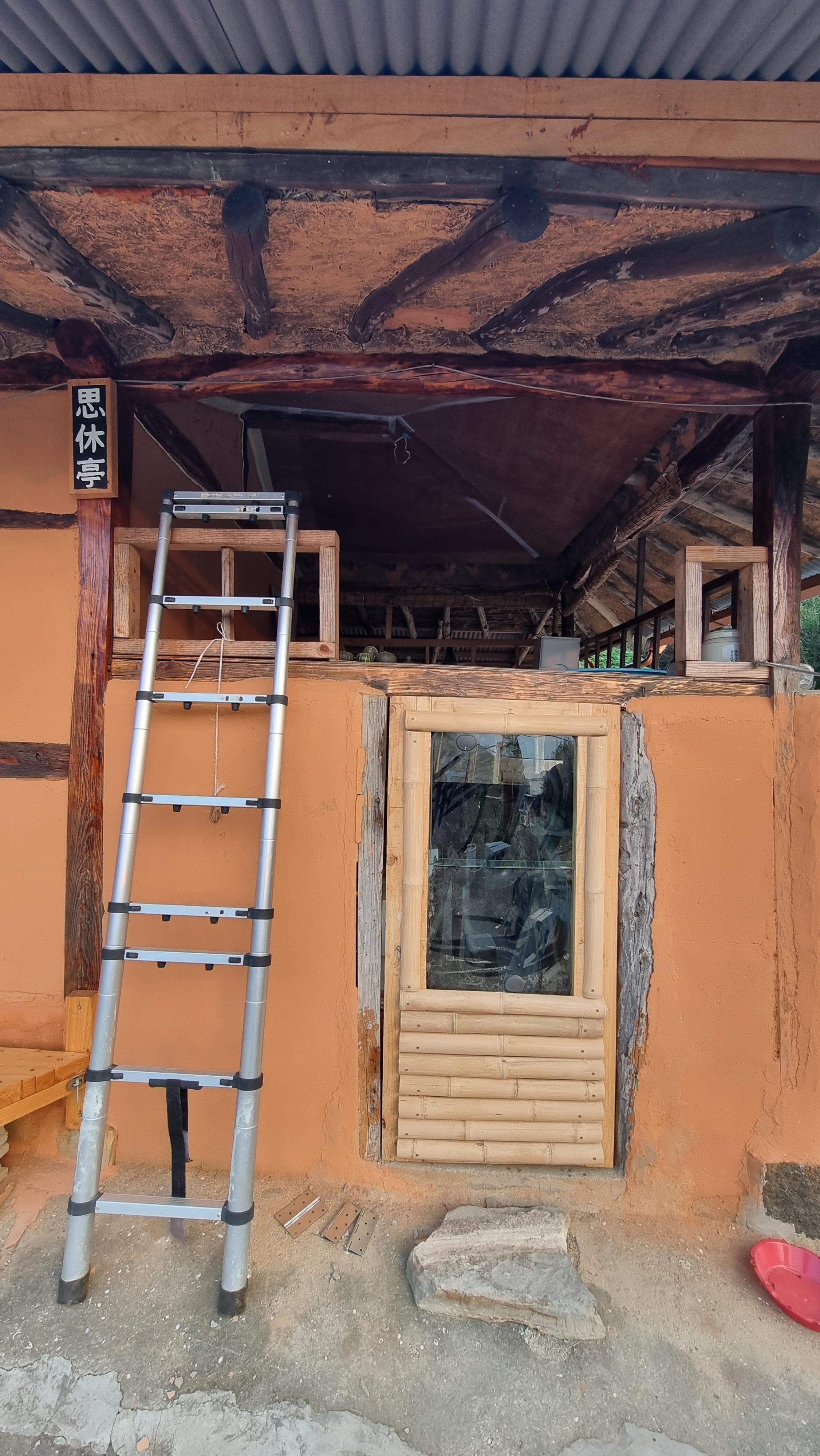 - 짝지가 있지만 늦은 아침을 먹었다. 어짜피 내가 하는 일이 어느 정도 끝나야 먹을 수밖에. 조금 기온이 내려간 듯하지만 덥기는 마찬가지다. 그래서 다락 쉼터에서 더위를 피하며 잠시 같이 낮잠을 자기도 했다. 오후 늦게 잠시 마을 산책을 갔다가, 저녁 때쯤 쉼터 아래 창고 문을 만들기 시작했다.