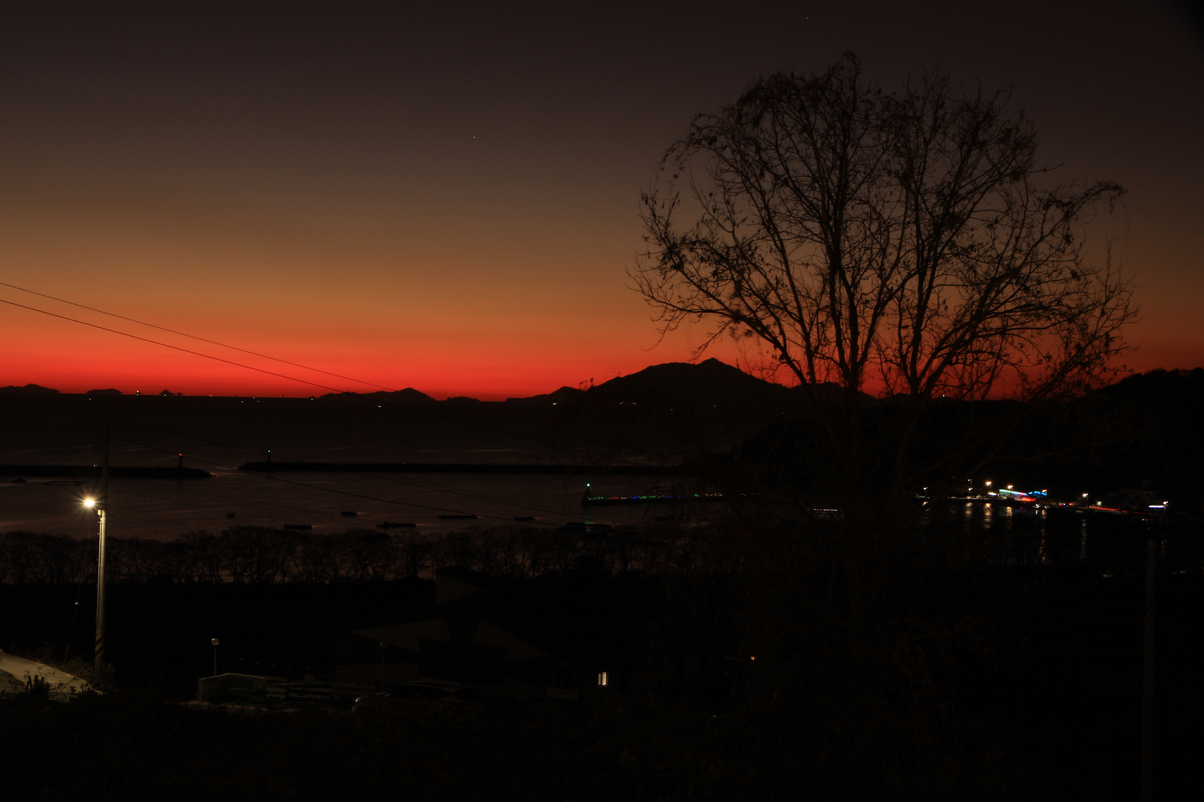 - 내가 생각한 정도의 모습은 아니었지만 그래도 그렇게 나쁘지 않은 장소였다. 이번의 경험으로 어디쯤에서 해가 뜨는지를 알았으니까, 다음에 다시 이곳을 찾는다면 더 좋은 장소를 선정할 수도 있을 듯하다. 오늘은 구름도 많이 없어서 바다에서 해가 바로 올라오는, 어쩌면 '오메가' 를 봤다고 할 수 있다. 방조림의 컨셉을 잡지 않고 바닷가에서 바로 해를 찍었다면 온전한 오메가 모습을 담을 수도 있지 않았을까하는 생각도 해본다.