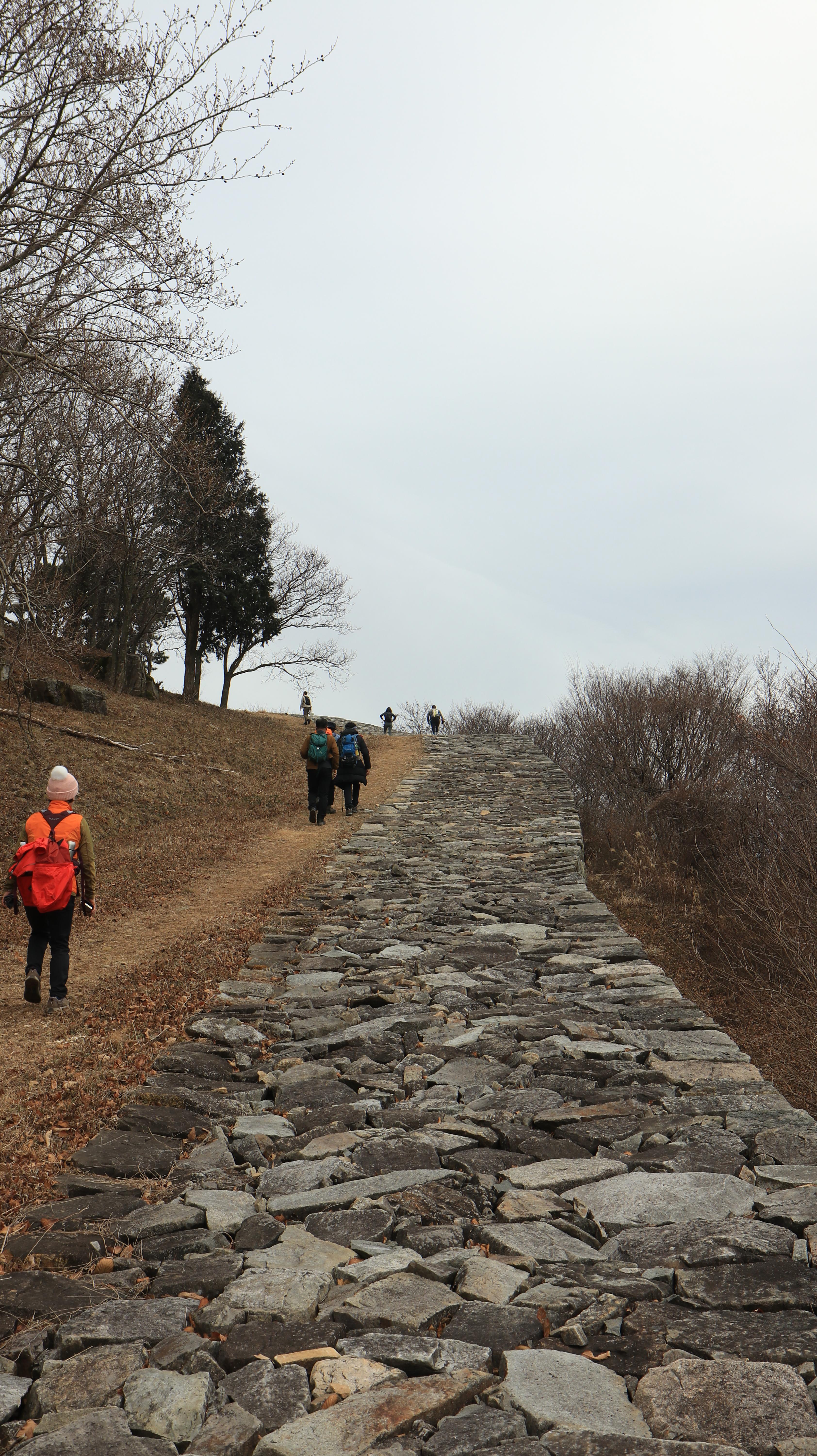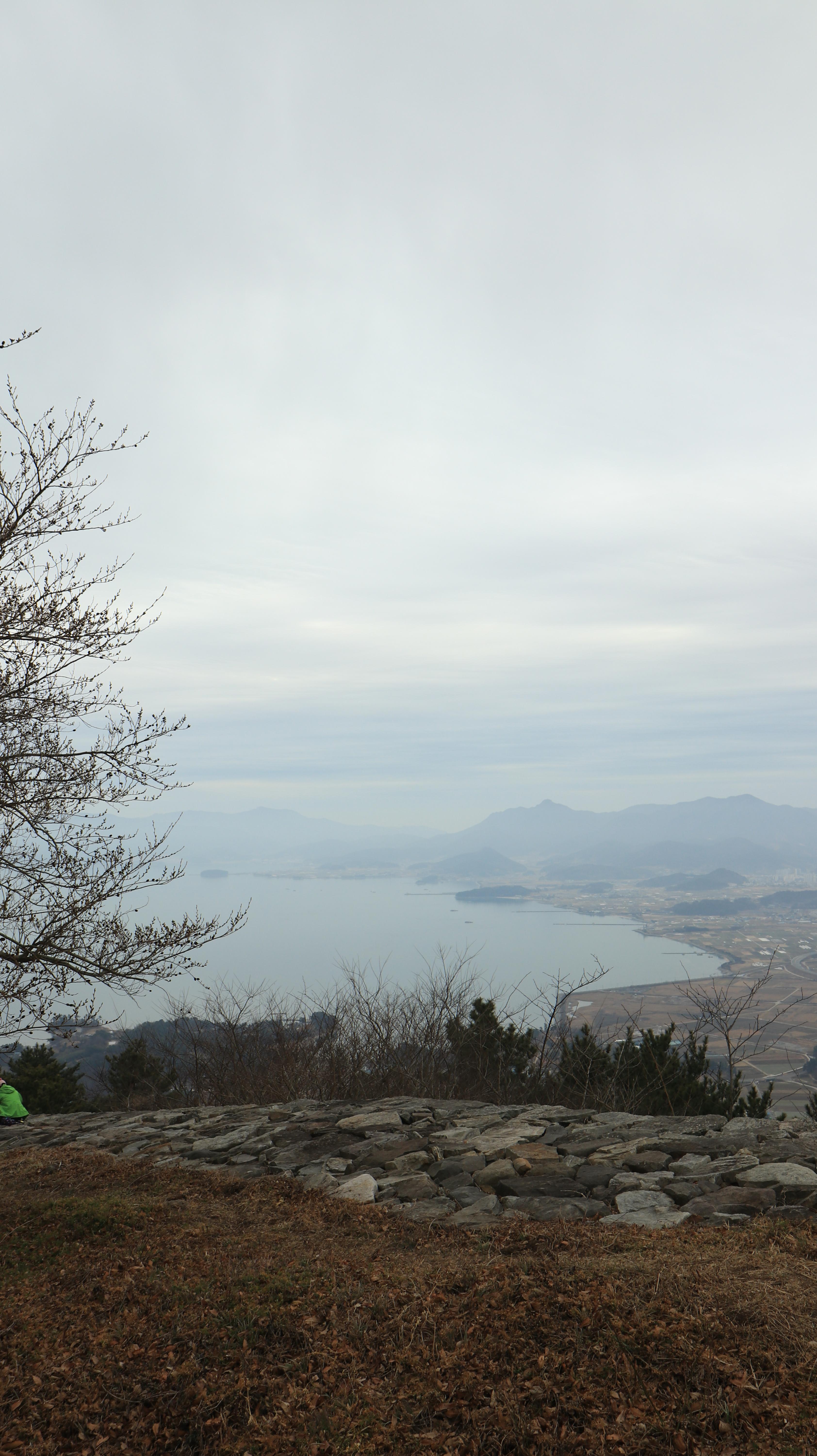- 대국산의 산성이 있는 정상까지도 힘들지는 않았다. 예상했던대로 대부분 포장길이었다. 산성 정상에서 점심을 먹었다. 대부분 두서너 명, 또는 몇 명이 어울려서 왔지만 나처럼 혼자 온 사람도 제법 보이는 듯했고, 이런 길도 힘들어 하는 사람들도 제법 있었다. 복장도 제 각각이다. 등산하는 사람들의 복장은 분명 아니다. 추리닝에, 청바지에, 긴 패딩에.....정상에서 점심도 각각 먹었다. 물론 나도 가져간 도시락으로 혼자 앉아서 먹었다. 점심을 거의 다 먹어 갈 때 쯤 지난번 우리면에서 했던 바래길 행사 때 만난 도우미 분이 늦게 도착해서는 혼자 먹고 있는 나를 보시더니 부르셨다. 난 아미 다 먹었는데 타이밍이 늦었네.