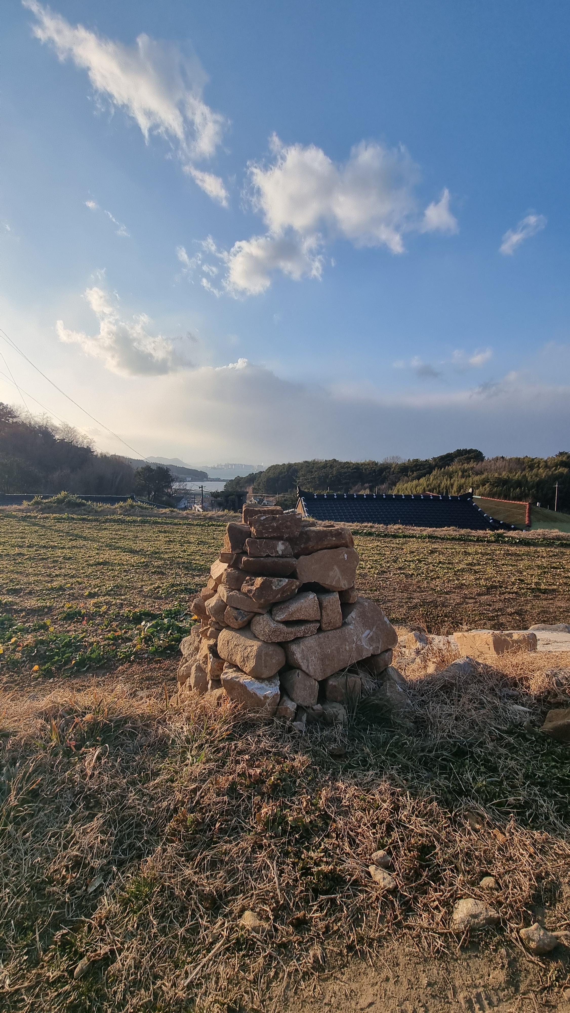 ■ 2025.02.27 - 남해, 목(맑다가 흐리다가) : 돌탑 쌓기 완료(9번째), 밭 일구기 등.