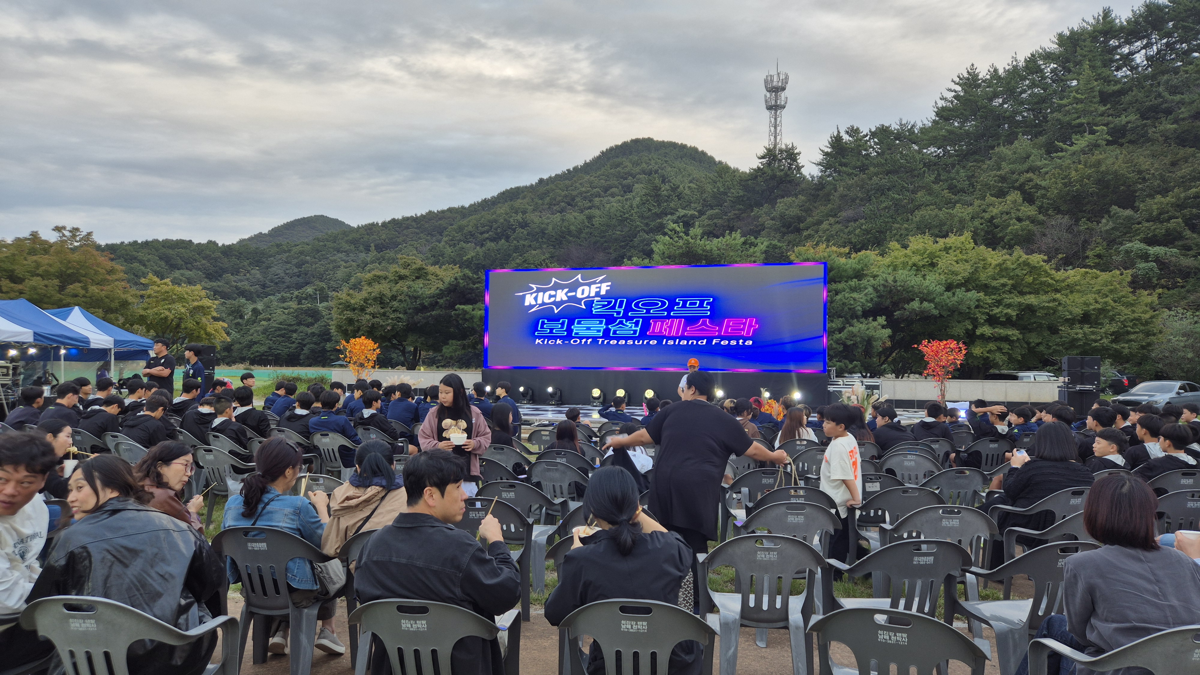 - 주로 젊은이들이 댄스 공연이 있었고, 트로트 가수의 노래도 있었다. 스포츠 클럽 학부모단체에서 오뎅과 떡뽁이 등도 제공되었다. 군수님도 잠시 참석해서 행사를 빛내 주었다. 나는 내일 아침 일찍 또 외출이 잡혀 있어 조금 일찍 집으로 왔다. 선선한 가을 날 저녁 공기가 무척이나 좋았다.