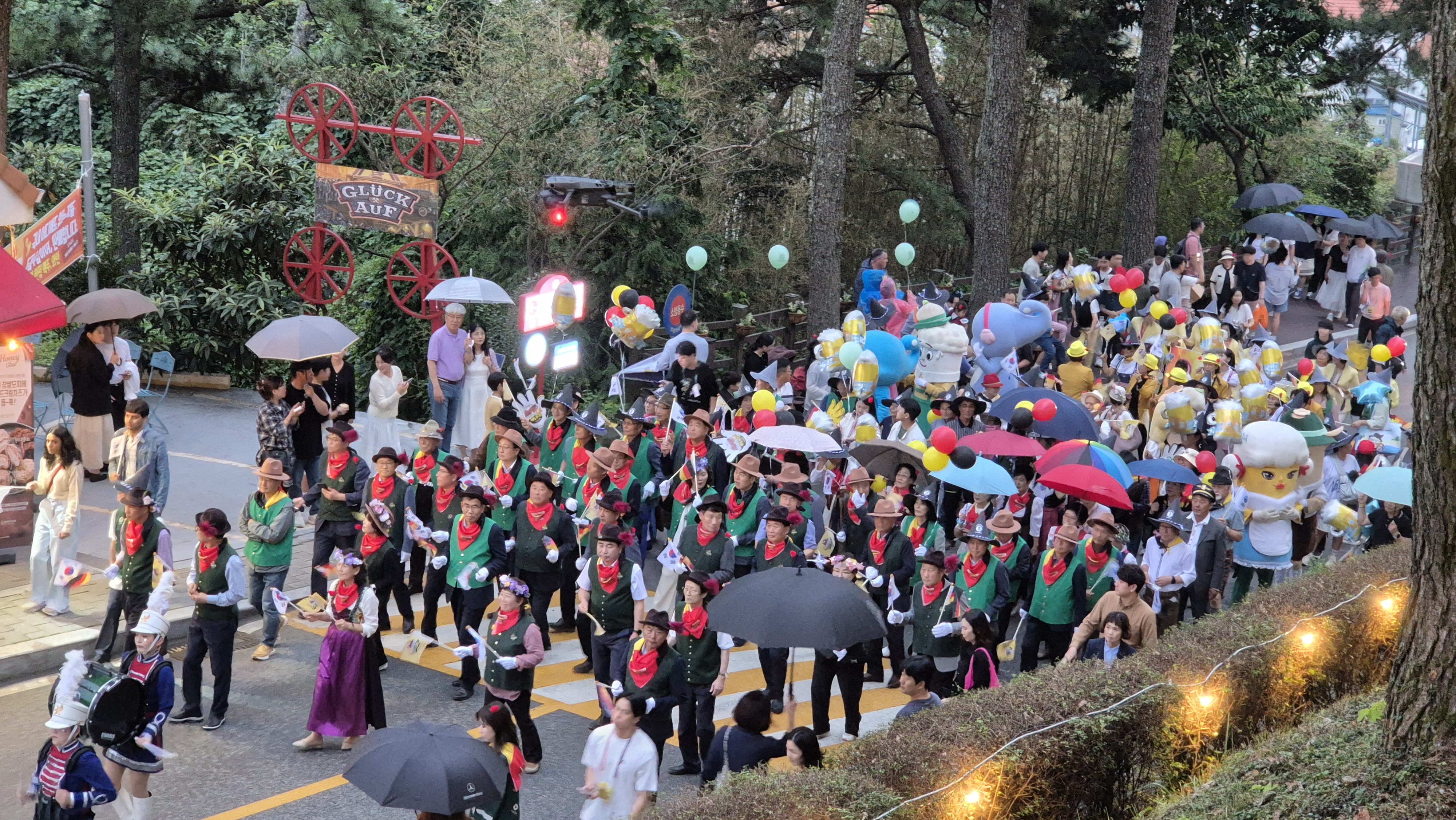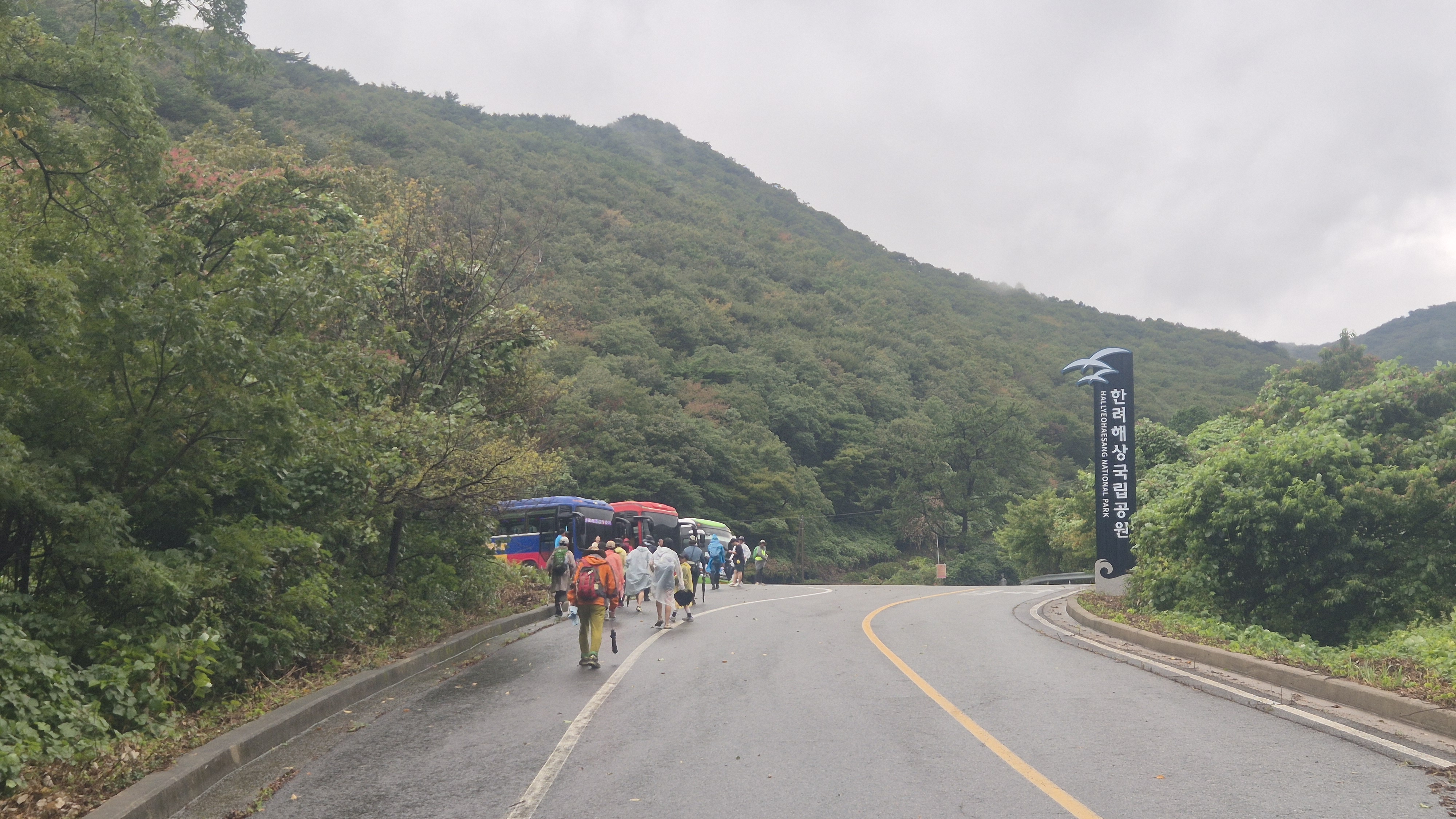- 버스가 출발할 때까지는 비가 오지 않았는데, 버스가 이동면 용소폭포 바래길 출발점인 용문사 주차장에 도착하기 직전부터 비가 내리기 시작했다. 그래서 참여 체크는 버스 안에서 진행 되었고, 셔틀 버스가 다 도착한 후, 출발 전 비를 맞으며 잠시 간단한 체조를 했다. 천둥 소리도 들린다. 용문사로 올라 가는 도중, 용문사를 돌아 다시 내려 오는 길은 엄청난 폭우가 쏟아졌다. 천둥 소리도 자주 들려서 겁을 먹지 않았다면 거짓말 하는 것일테다. 한 30분 정도는 많은 비가 내린 듯하다.