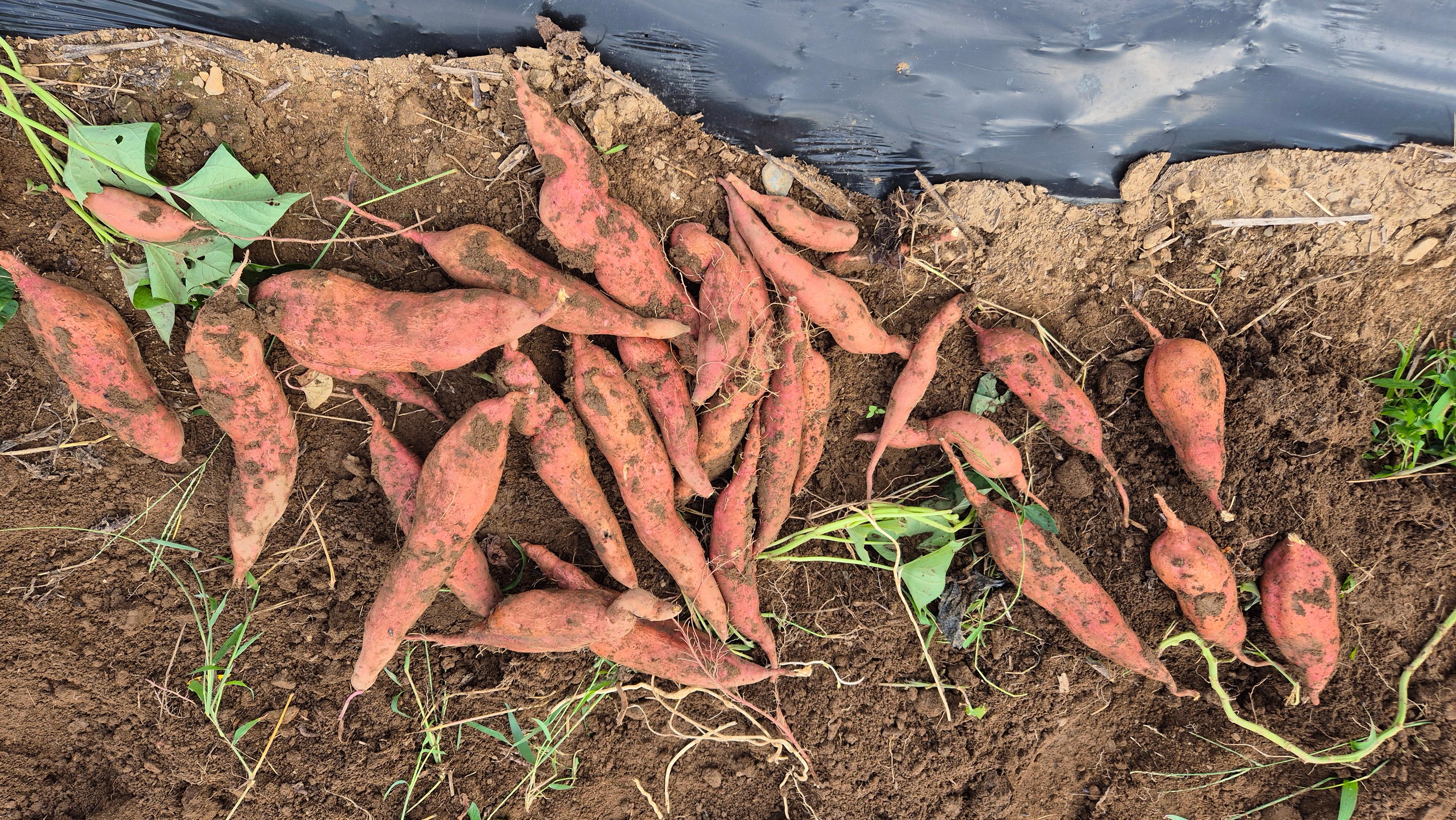 - 이곳에는 오늘 이전에 두 번이나 씨앗을 뿌린 상태다. 그 이후에 뿌린 곳에서도 씨앗이 발아 되어 시금치가 자라고 있는데, 이곳에서만 아예 씨앗 발아가 되지 않았다. 그래서 오늘 세 번쩨 씨앗을 뿌린 것이다. 설마 이번에도 나지 않지는 않겠지. 그리고 고구마를 캤다. 고구마를 캐기 전에 고구마 순을 조심스럽게 걷었는데, 짝지가 이것으로 반찬을 만든단다.