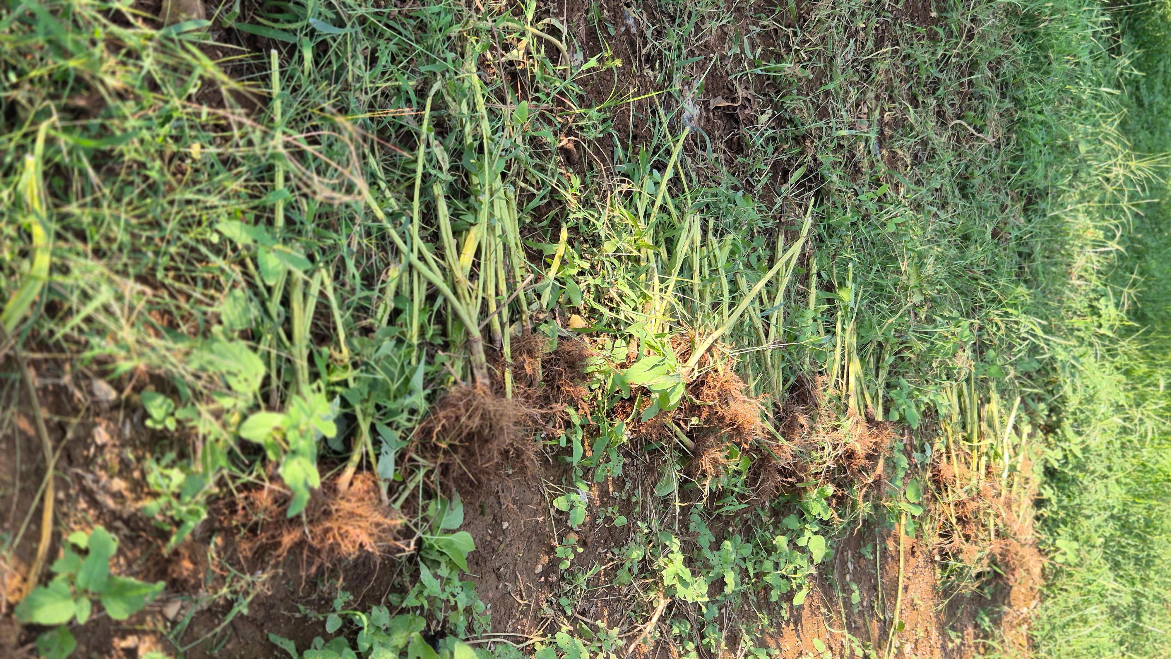 - 아침에 일어나자마다 곧 바로 어제 다 뽑지 못한 참깨 대를 뽑았다. 밭이 부드러워진 상태라 뽑는데는 큰 어려움이 없었다. 하지만 대를 뽑아 낸 뒤 참깨를 심을 때 깐 검은 비닐을 걷어 내는 것이 문제였다. 비닐 구멍 사이로 올라 온 풀들이 비닐을 꽉 잡고 있어 비닐을 잡아 당길 때마다 갈갈이 찢어졌다. 만약 풀이 짧고 많지 않다면 쉽게 걷어 낼 수 있는 비닐이다.