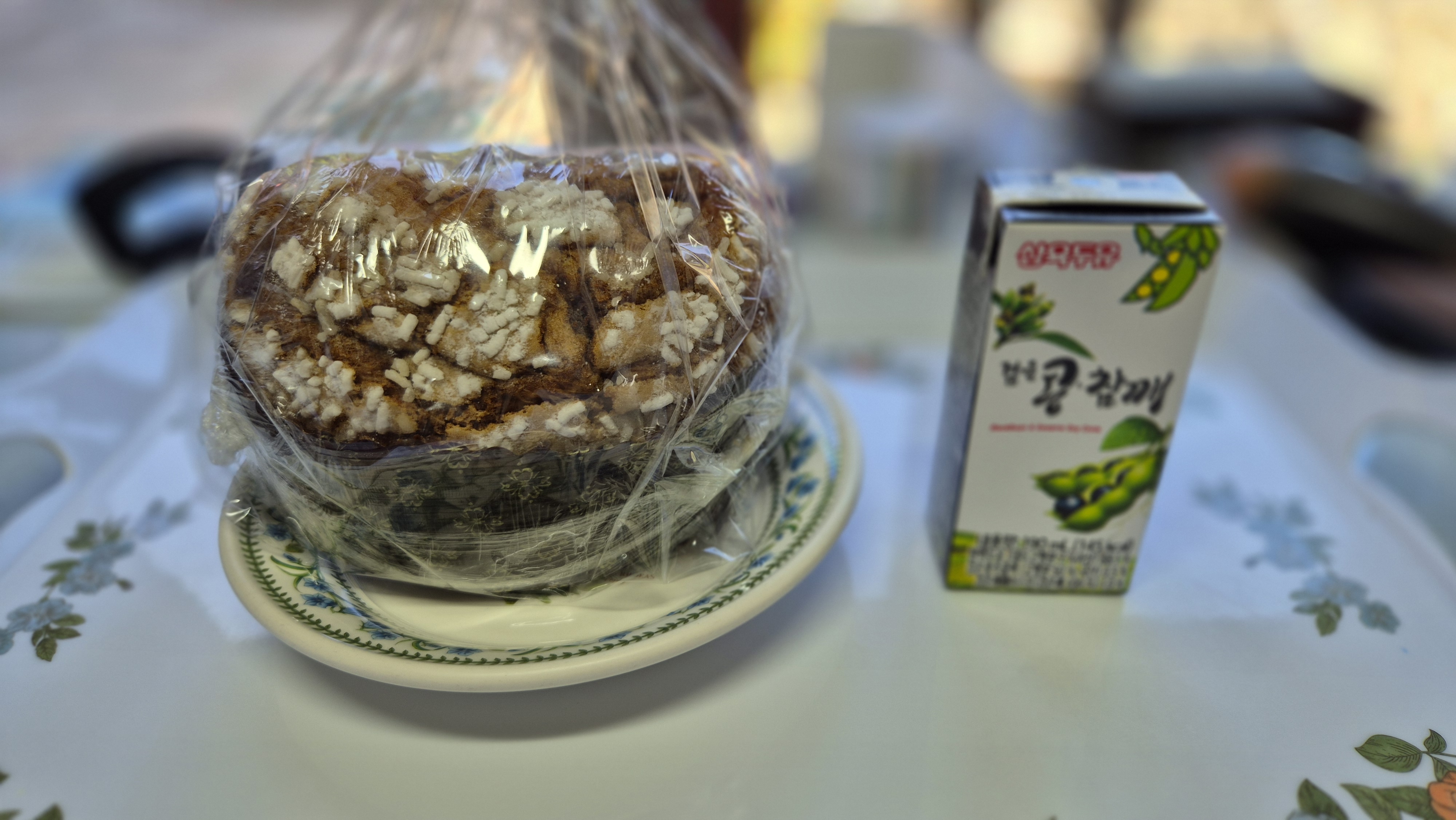 - 식전 간식을 든든히 먹고 나갔다. 삶은 계란 3개, 요거트 1개, 두유 1개, 쵸코파이 1개, 밀감 1개.....