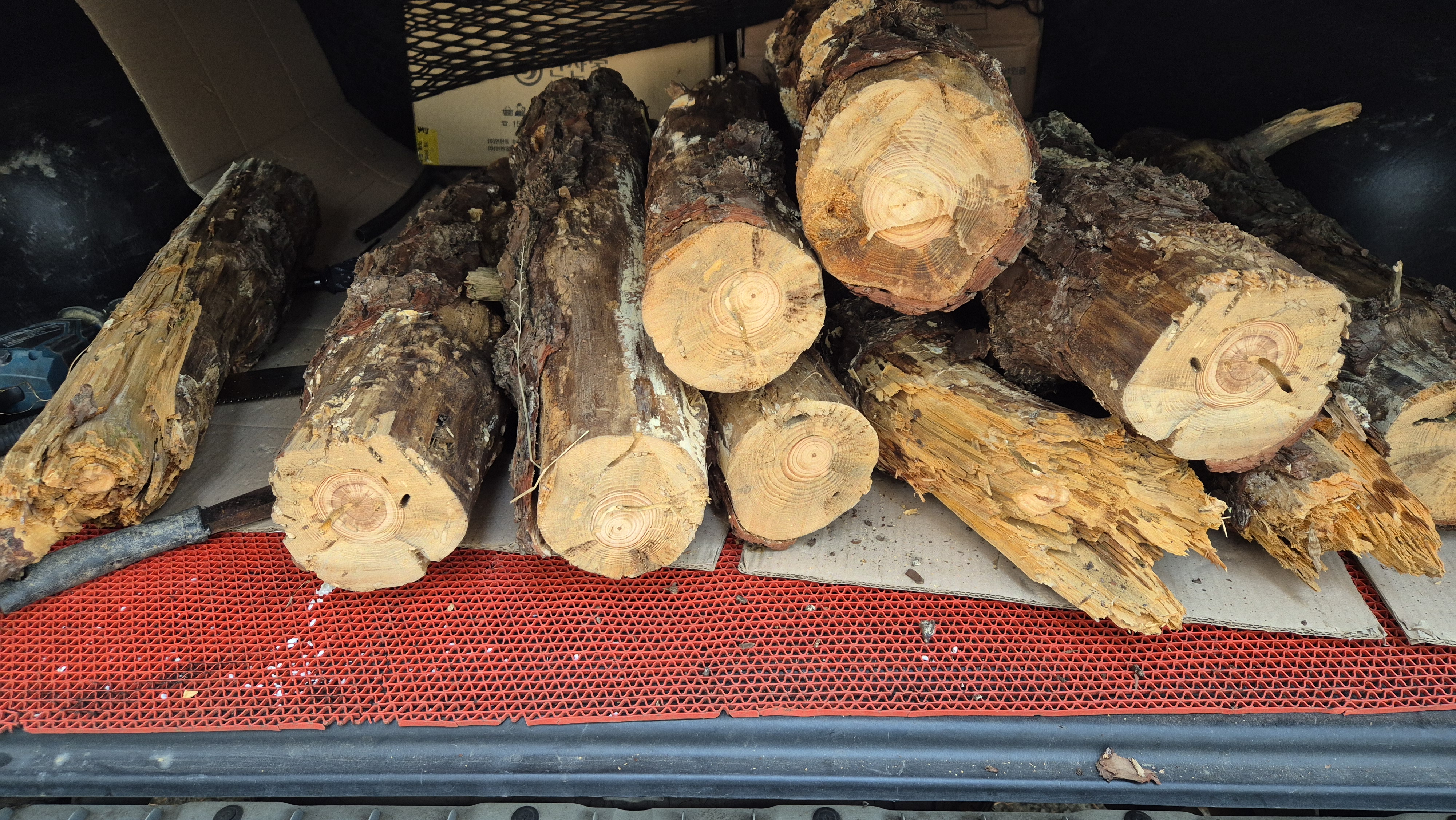 - 산책을 하고 돌아 와 톱 등을 싣고 차로 산책하는 곳으로 갔다. 그기서 죽은 소나무 한 그루를 베고 적당한 크기로 잘라 차에 싣고 왔다. 나무가 죽은지 너무 오래 된 상태라 많이 썩어서 좋은 땔감은 되지 못했다. 집으로 가져와 마당쇠가 되어 땔감을 쪼개서 부엌에 갖다 두었는데, 이것부터 먼저 군불에 사용해야겠다.