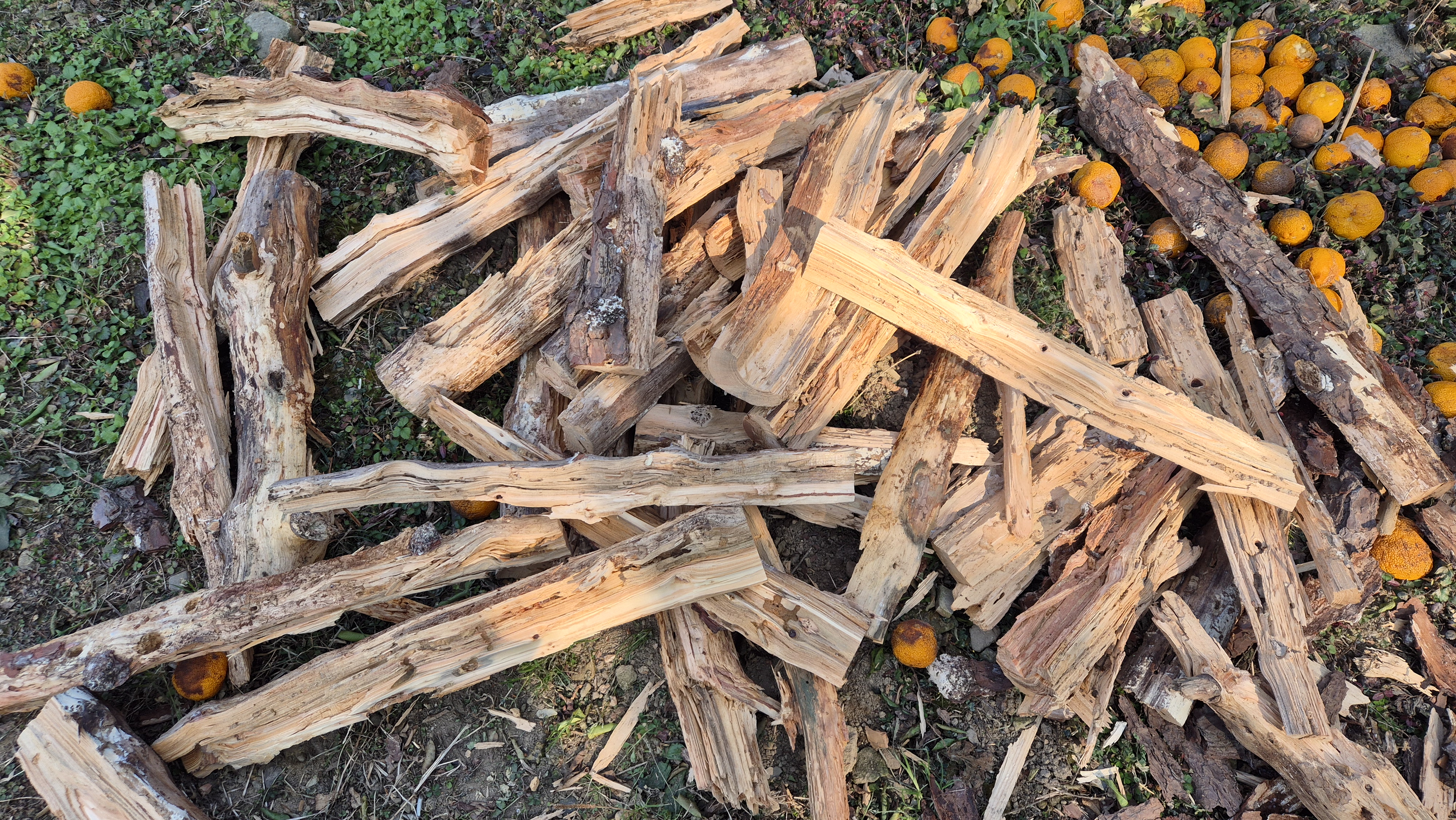 - 난 어제 일부 베었던 땔감 나무를 오늘 마저 잘랐다. 그리고 어제처럼 한 토막을 쪼갰다. 어제 것을 포함해서 네 토막이 남았다. 심심할 때 쪼개면 된다. 우리집은 땔감 부자다. 몇년 전에 마련한 대나무 땔감도 아직 남았고, 그동안 산책을 하면서 마련해 놓은 땔감도 많다. 이것 만으로도 몇 해 겨울은 지날 듯하다. 그래도 기회가 될 때, 시간이 허락할 때 미리 해 놓는 것이다.